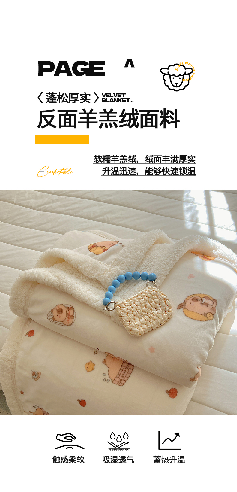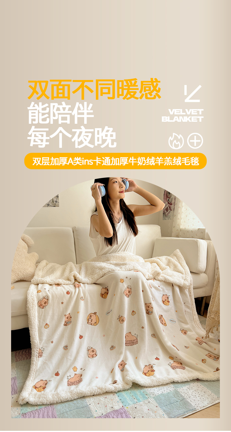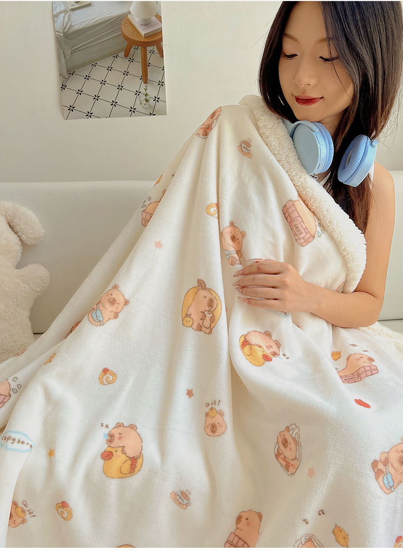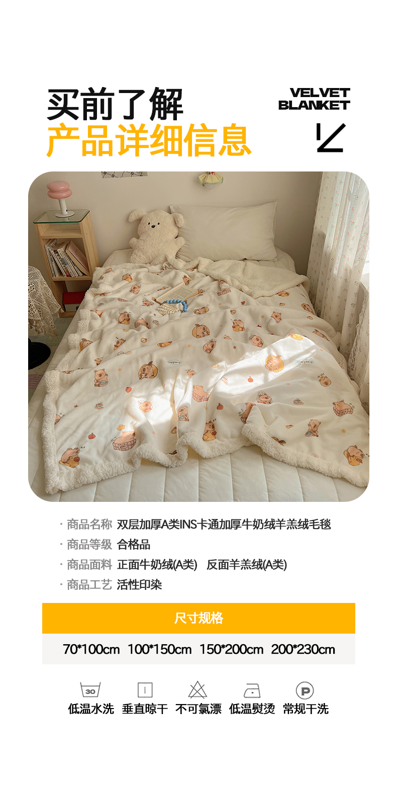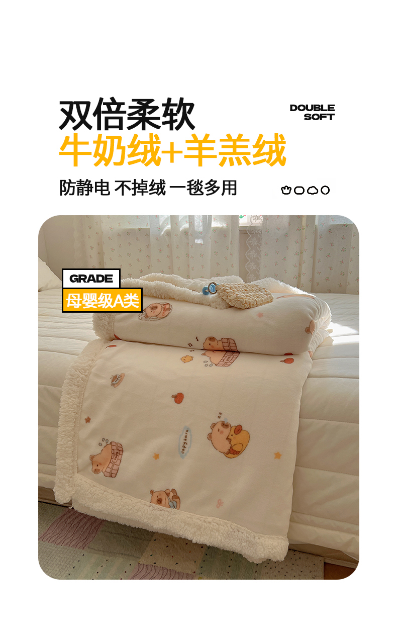 商品名称:桃子家居 2025新款A类ins小清新少女可爱奶油猫咪卡通加厚牛奶绒羊羔绒毛毯多功能毛毯 绒毛毯-MT乐乐鼠