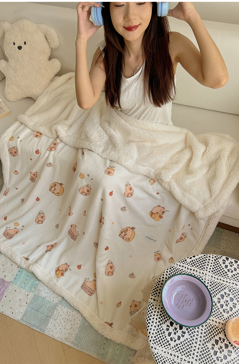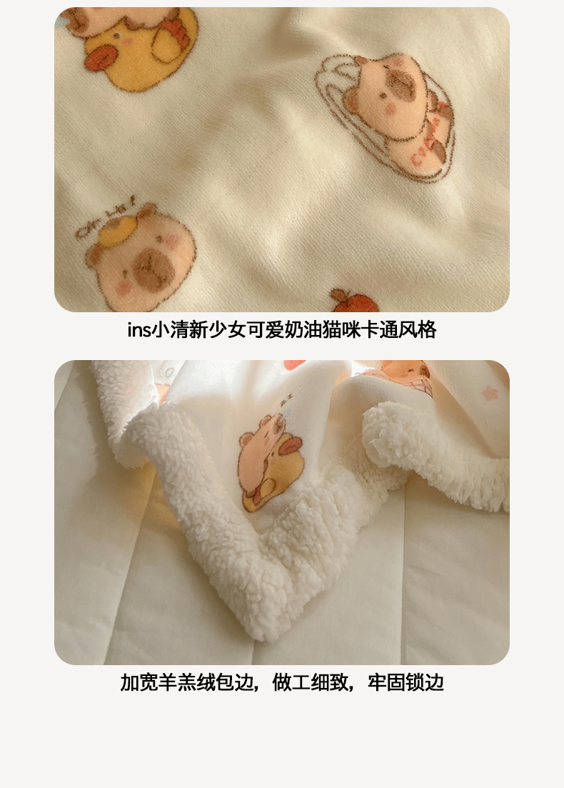 桃子家居 2025新款A类ins小清新少女可爱奶油猫咪卡通加厚牛奶绒羊羔绒毛毯多功能毛毯 绒毛毯-MT乐乐鼠