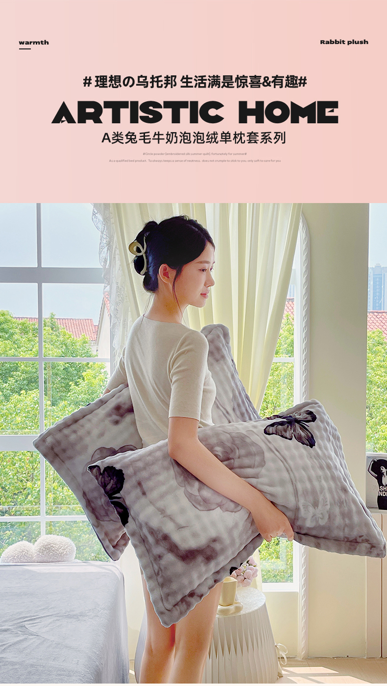 商品名称:凯儿家纺 2025新款兔毛牛奶泡泡绒单枕套单品枕套枕套单件 蝶儿飞飞