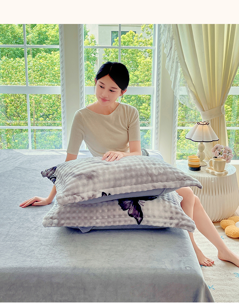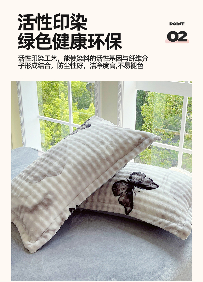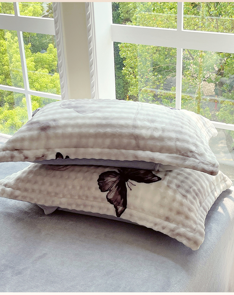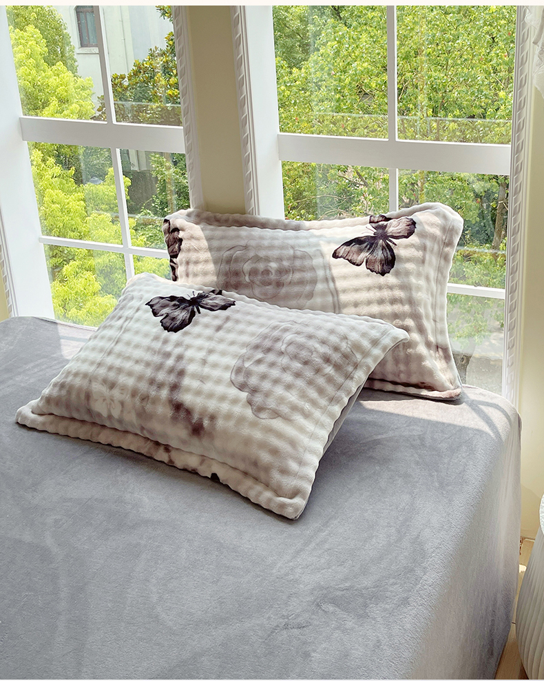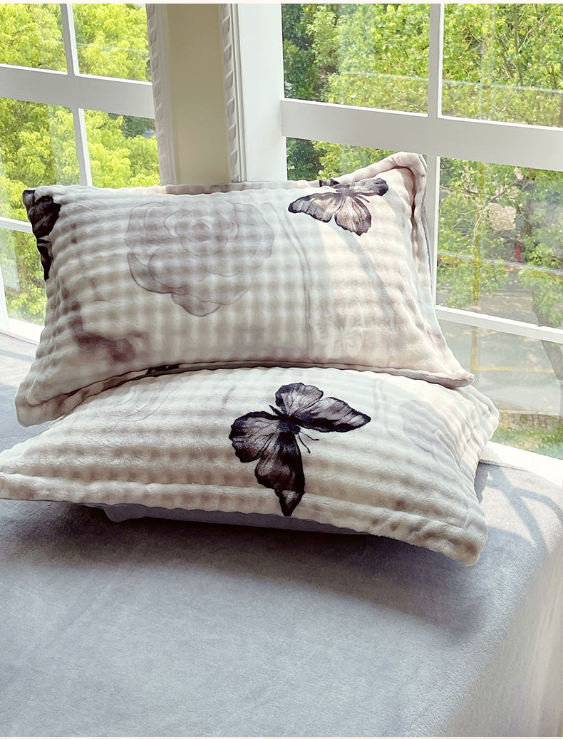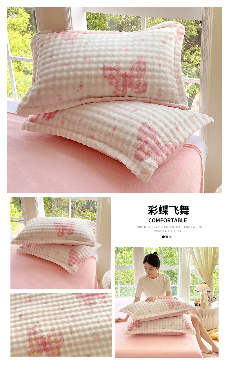 凯儿家纺 2025新款兔毛牛奶泡泡绒单枕套单品枕套枕套单件 蝶儿飞飞