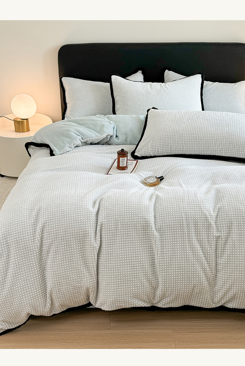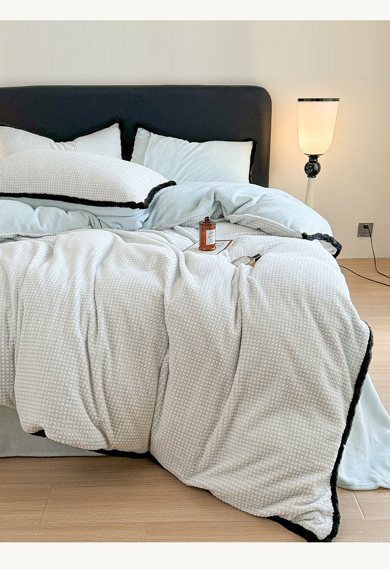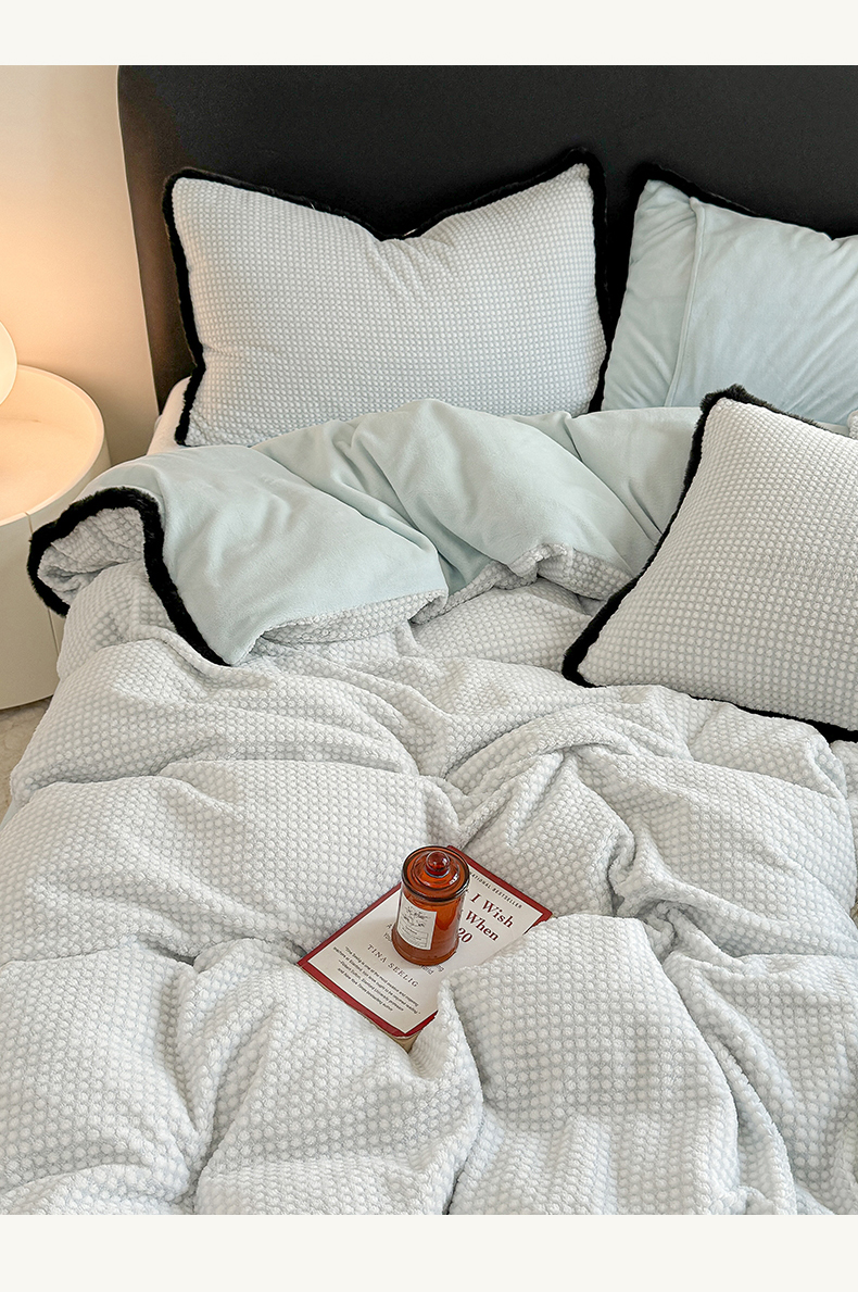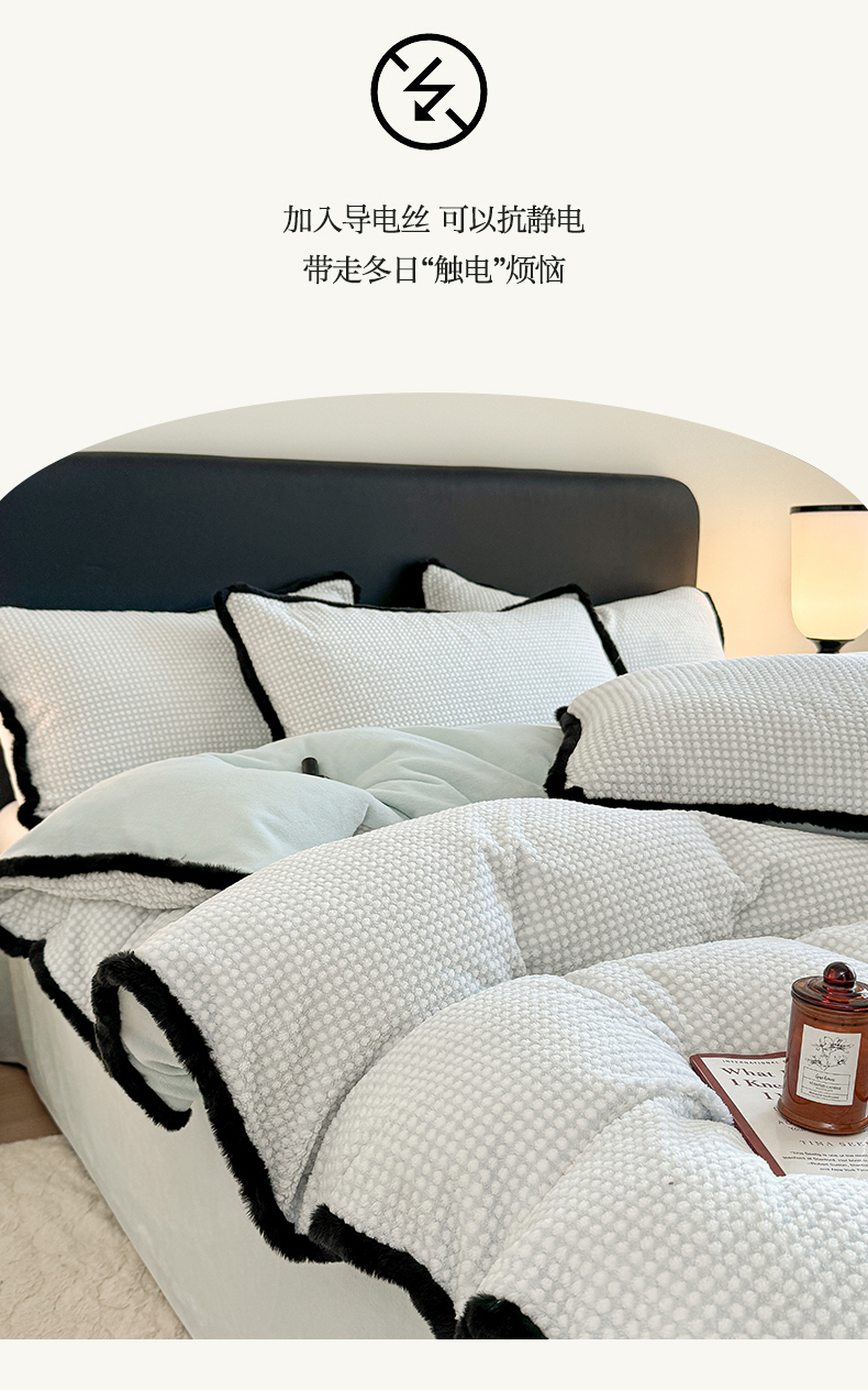 商品名称:KA家纺 2025冬兔毛边阳离子提花牛奶绒四件套 温雅系列 温雅蓝