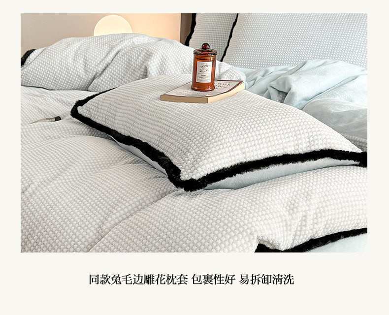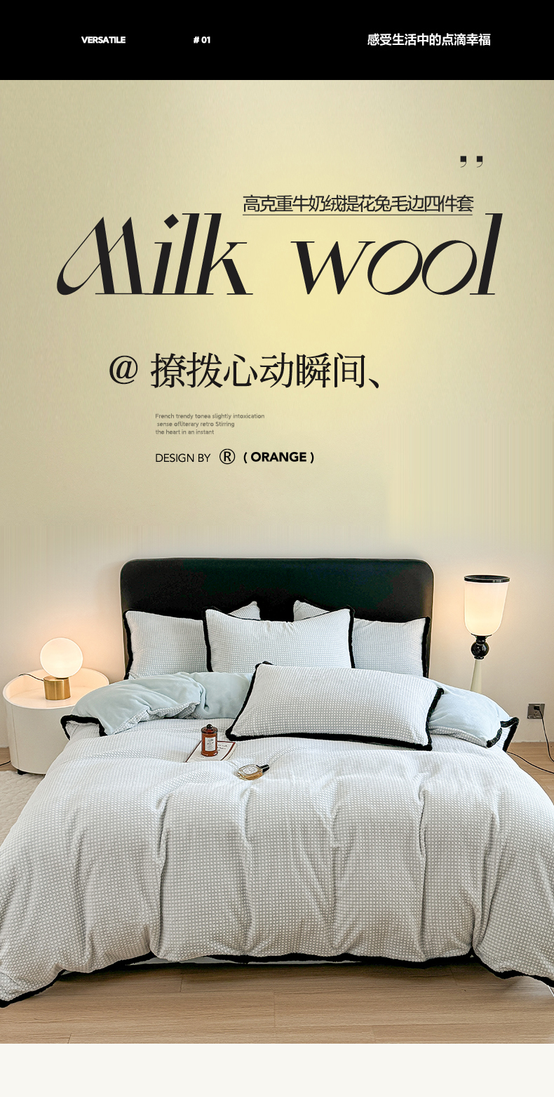 (总)KA家纺 2025冬季高克重绣花雕花牛奶绒四件套,相约奶昔白,相约粉,相约绿,相约蓝