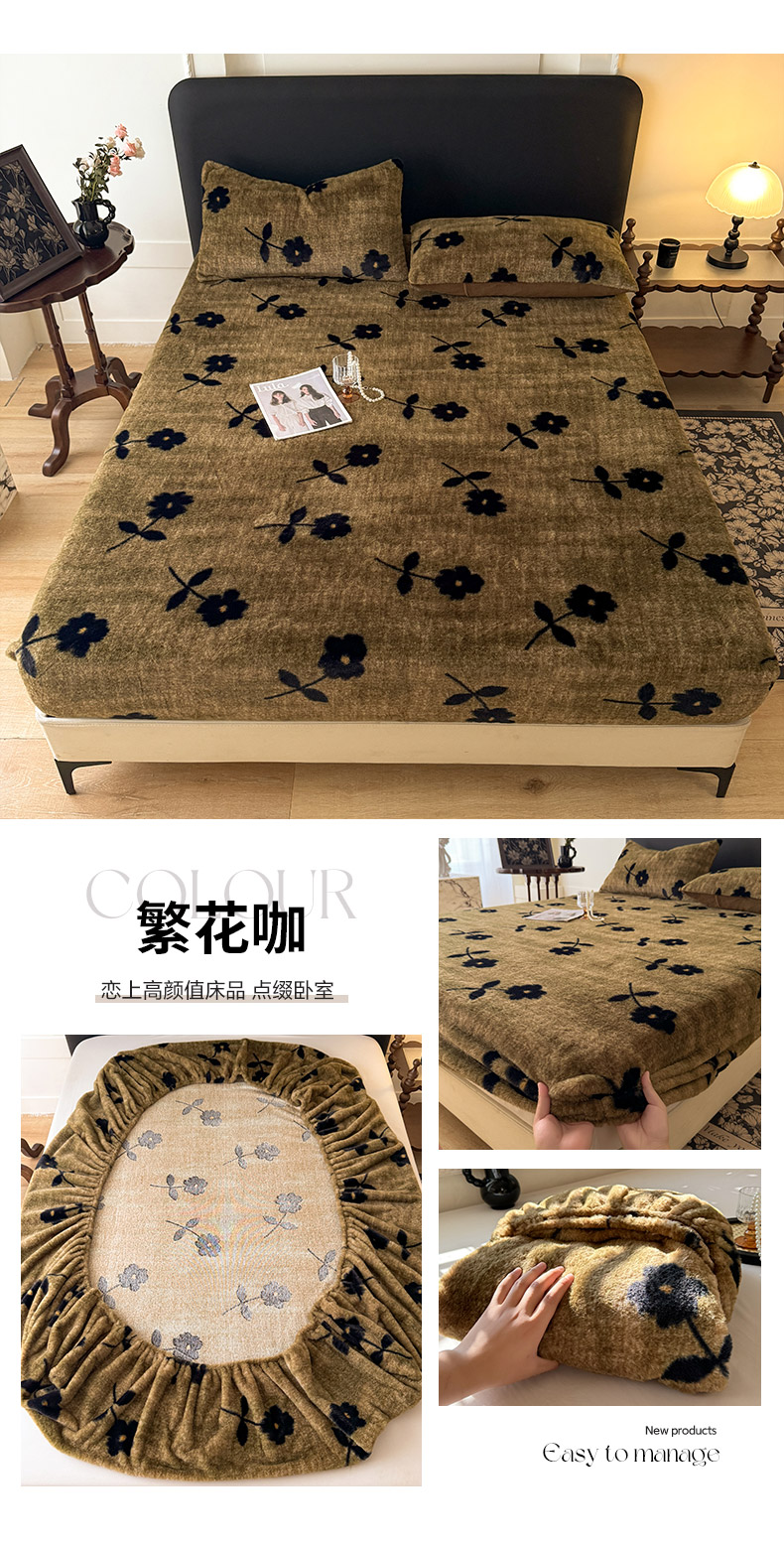 商品名称:绒世界 2025秋冬加厚兔绒床笠 床笠兔绒-繁花咖