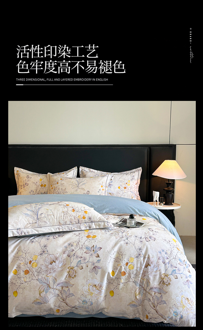海洋家纺 2025新款100%全棉磨毛数码印花四件套加厚全棉四件套-提供买家秀 花语情怀 米白