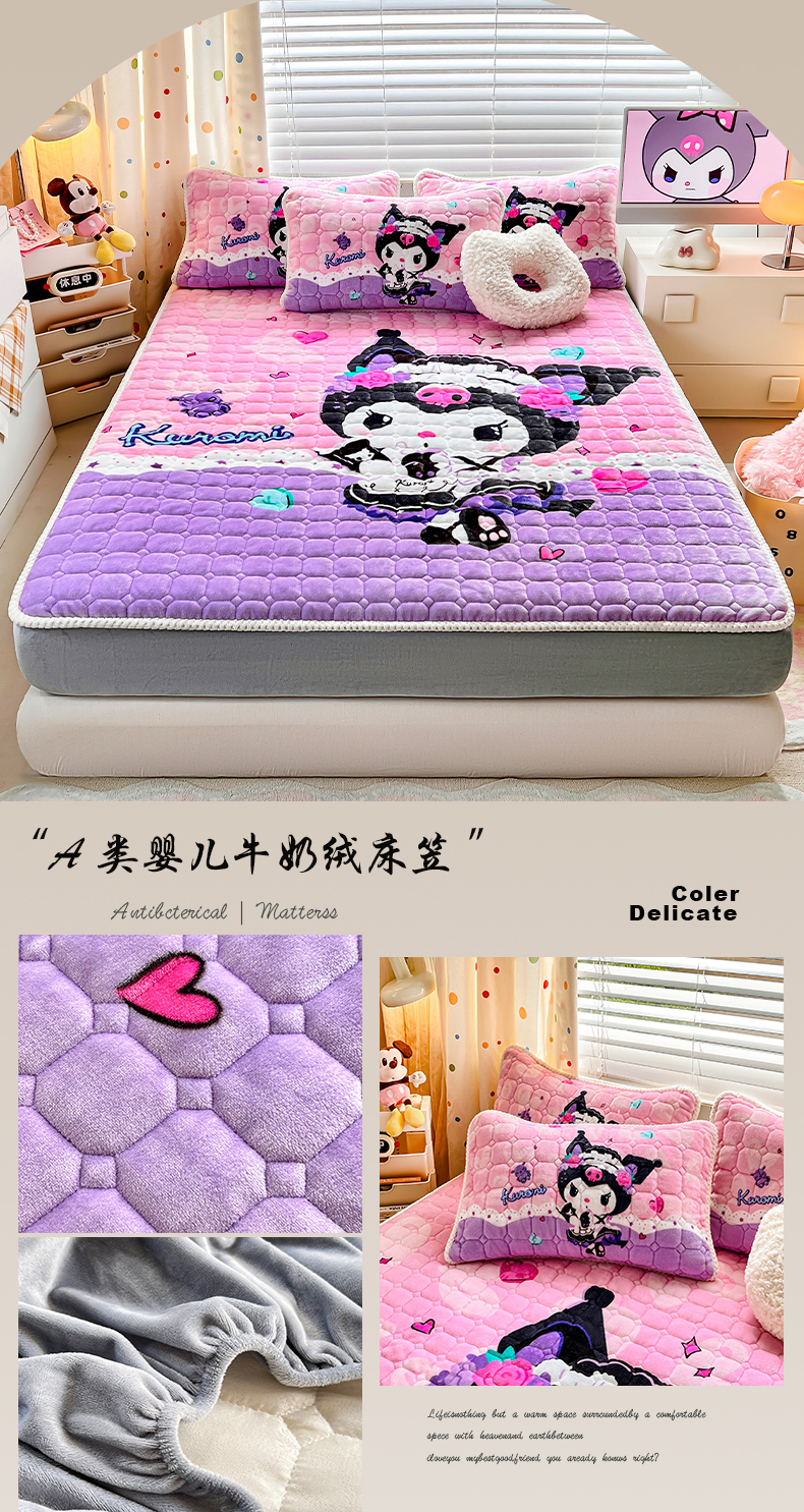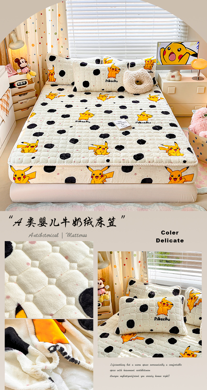 (总)徕米家居 2025新款牛奶绒加棉床笠单品床笠单件单床笠,Q版皮卡丘,波点皮卡丘,大版大耳狗,大版库洛米,大版美乐蒂,大版喷火龙,欢乐帕恰狗,杰尼龟,皮卡丘伙伴,小火龙