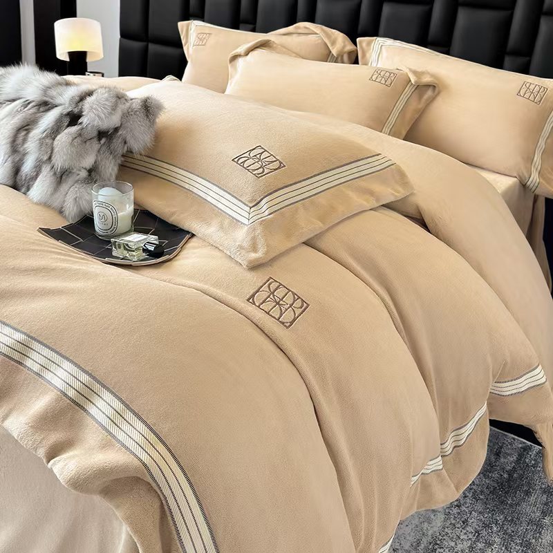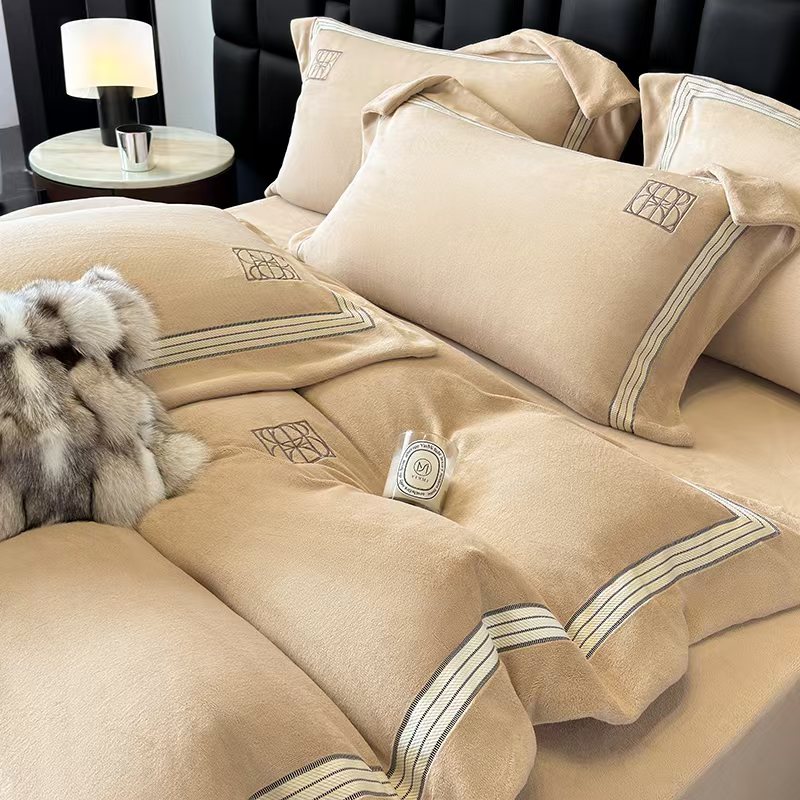 (总)席之家 2025新款刺绣牛奶绒四件套,花语-卡其玉,花语-奶咖,花语-青柠绿,花语-少女粉