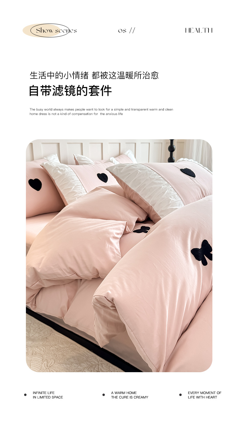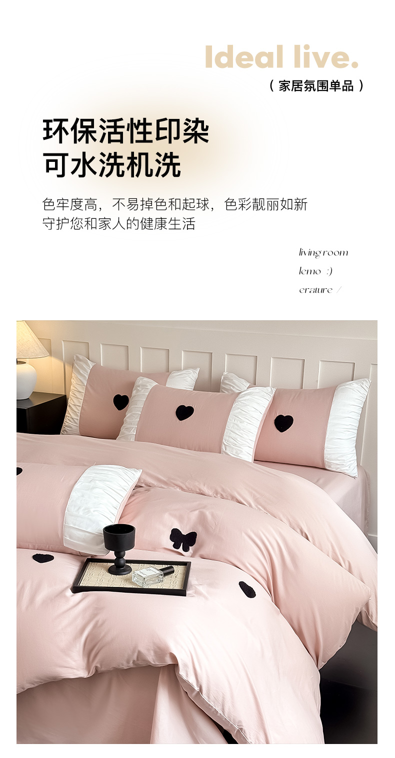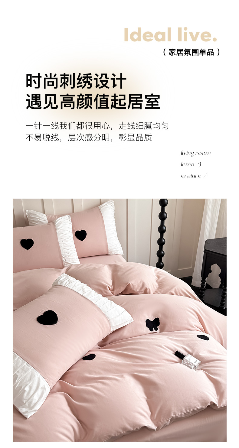 商品名称:理想家家纺 2025新款纯棉轻奢刺绣四件套-心愿系列 心愿-粉