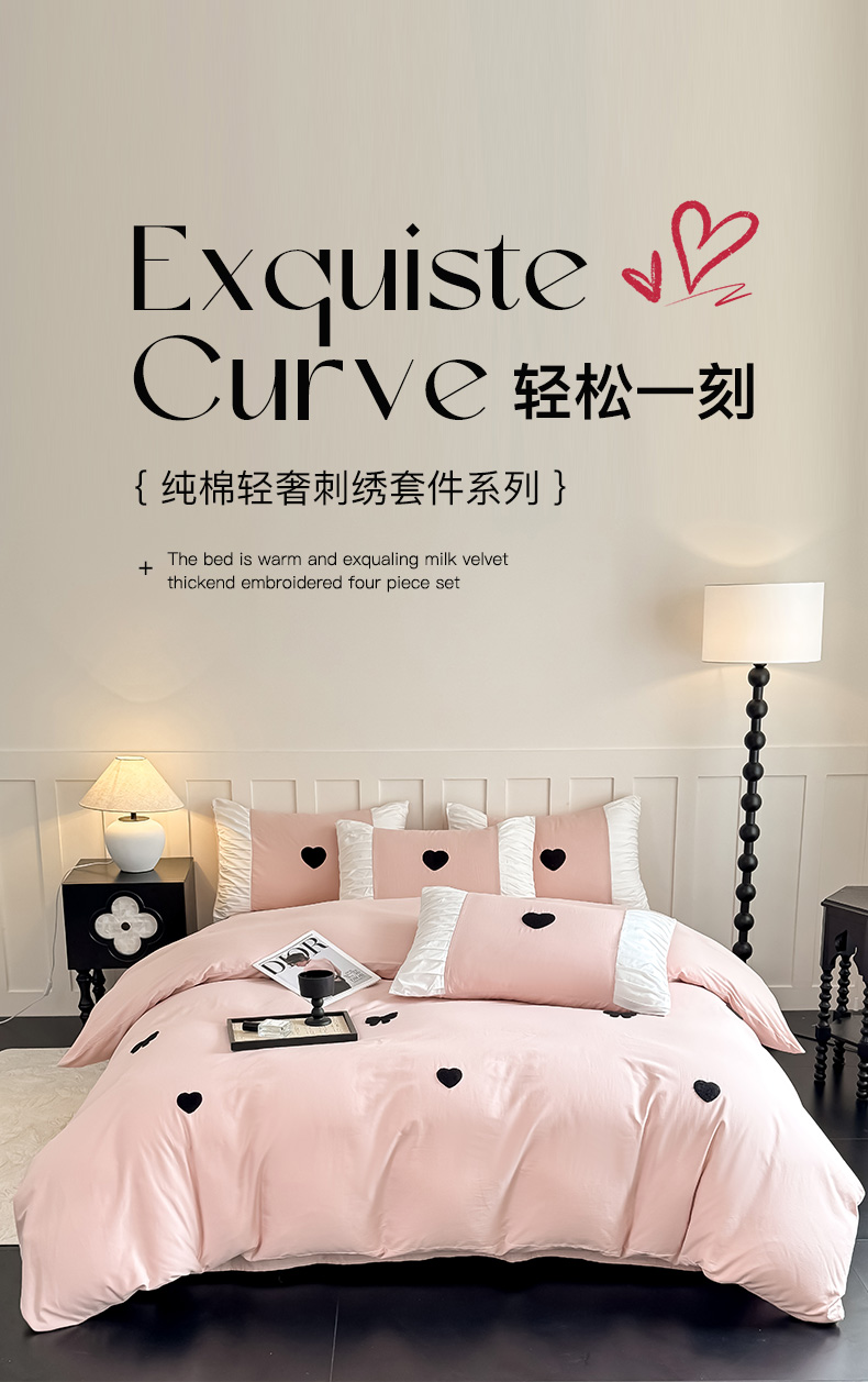 理想家家纺 2025新款纯棉轻奢刺绣四件套-心愿系列 心愿-粉