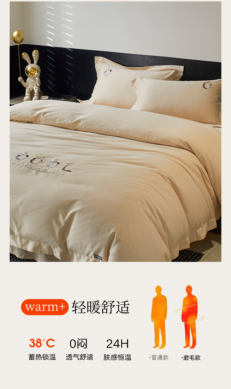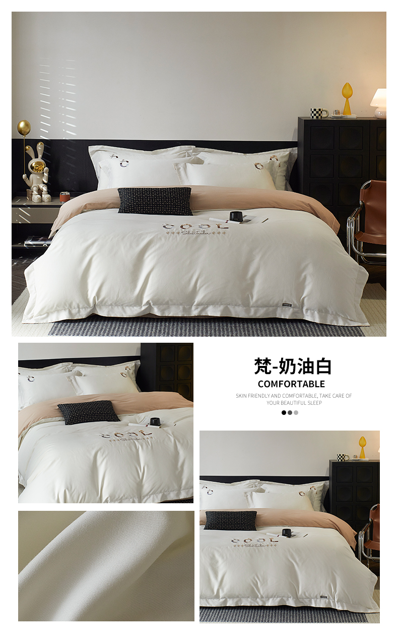 (总)鼎飞家纺 2025新款全棉磨毛刺绣四件套系列-梵,梵-卡布基诺,梵-雅灰,梵-奶油白,梵-蕊粉,梵-荞麦