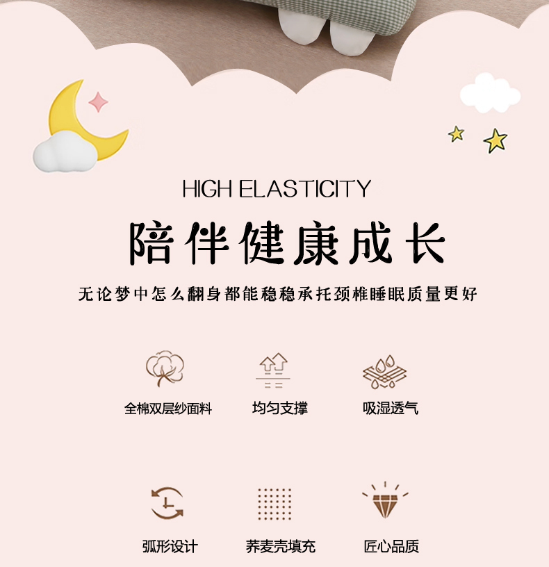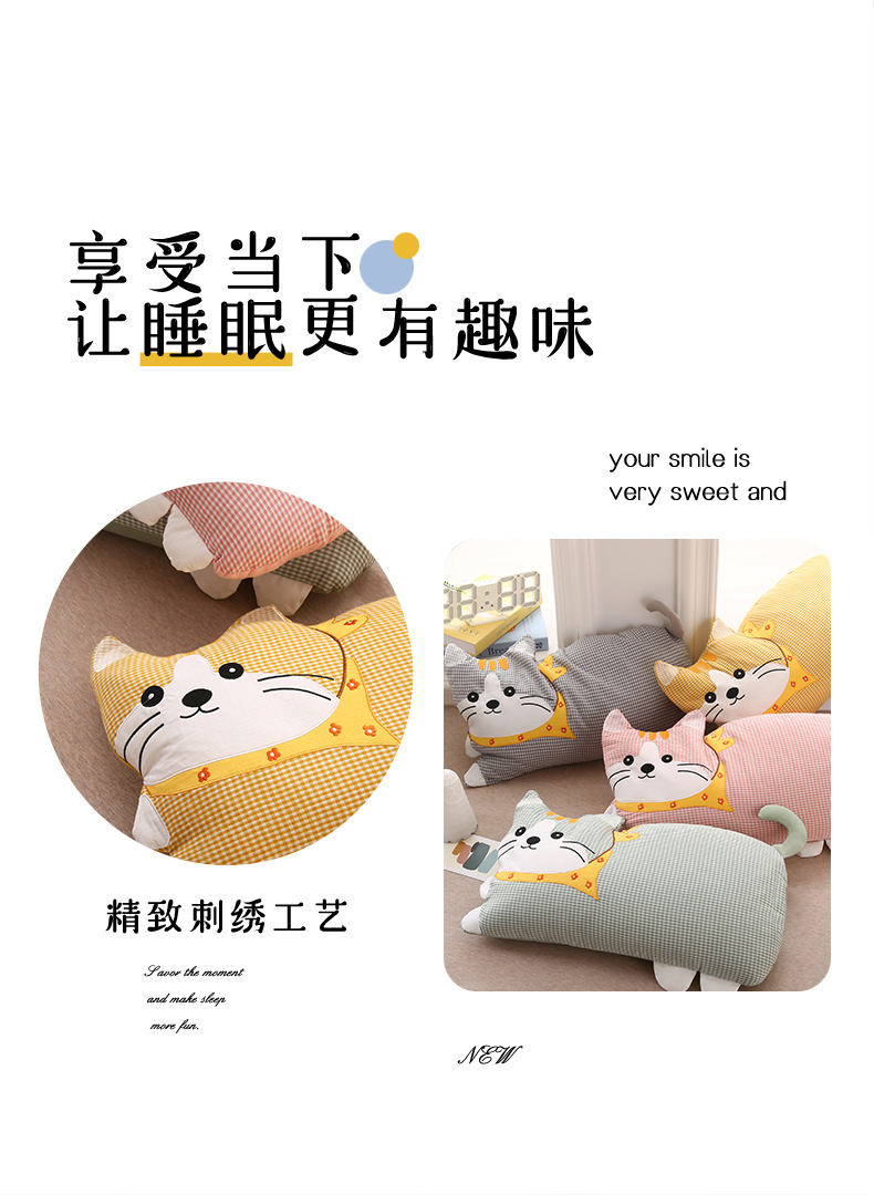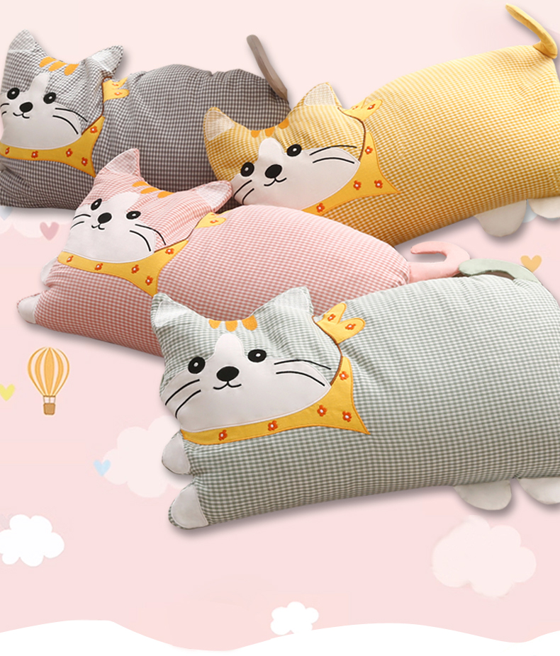商品名称:金牛枕芯 2025新款全棉双层纱围巾猫荞麦枕儿童宝宝枕枕头枕芯 围巾猫-深灰