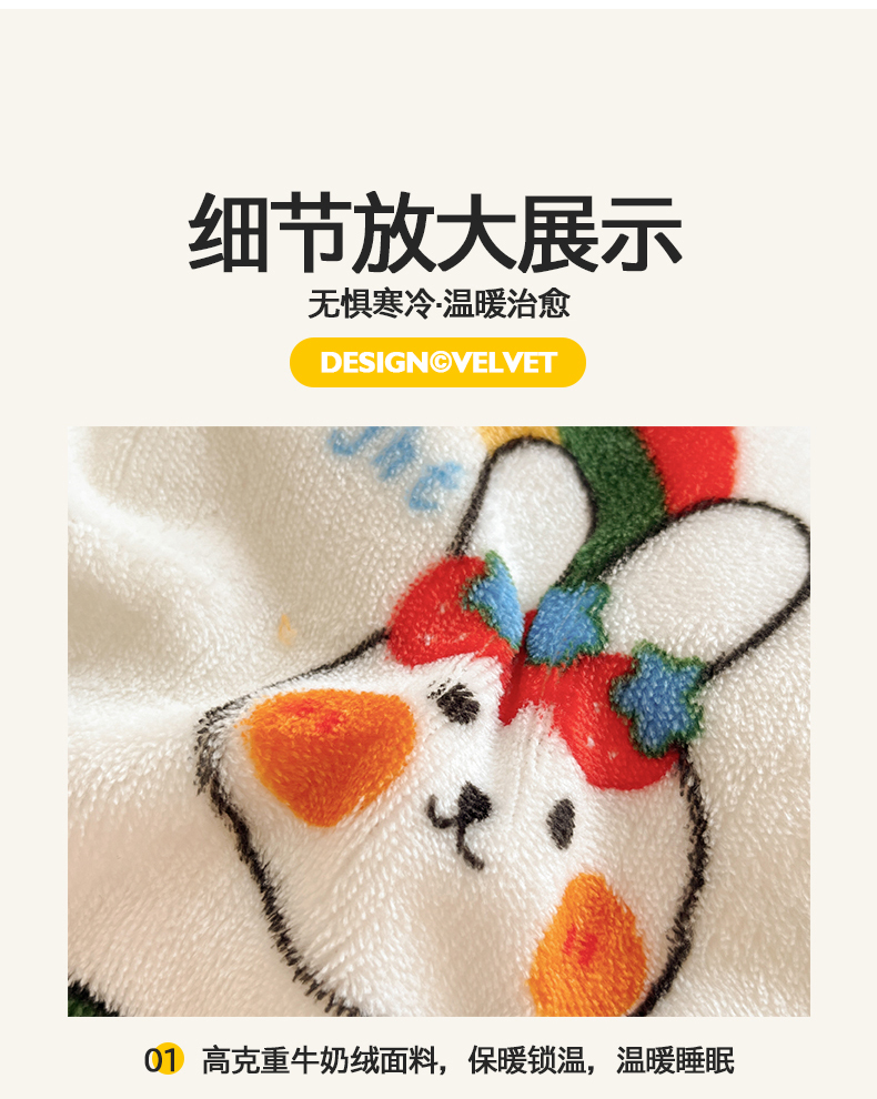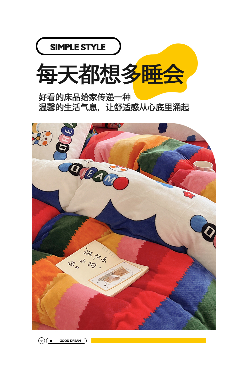 桃子家居 2025新款A类ins小清新少女奶油卡通可爱加厚牛奶绒四件套 绒-彩虹兔