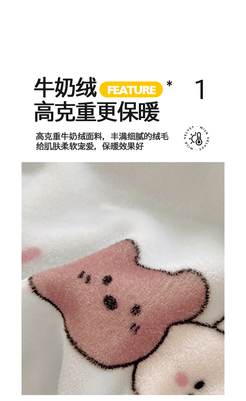桃子家居 2025新款A类ins小清新少女奶油卡通可爱加厚牛奶绒四件套 绒-蓝色熊兔