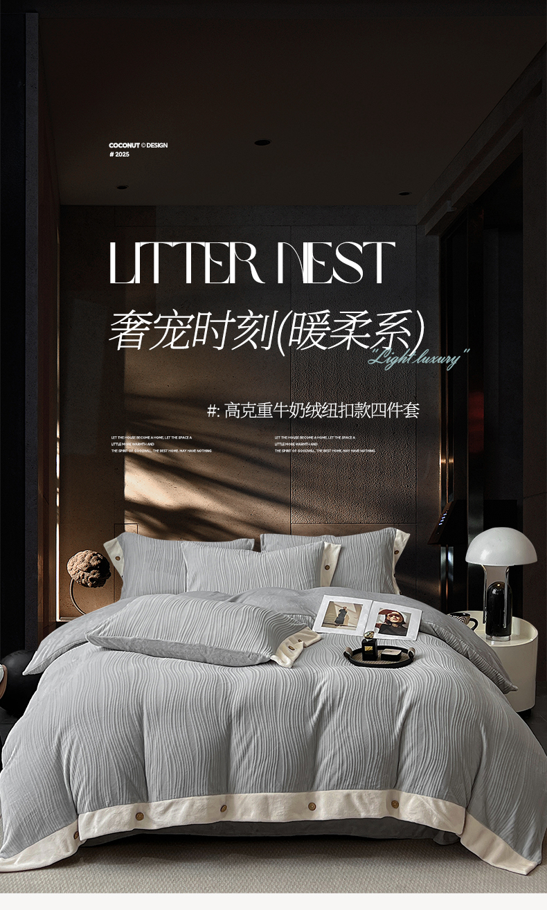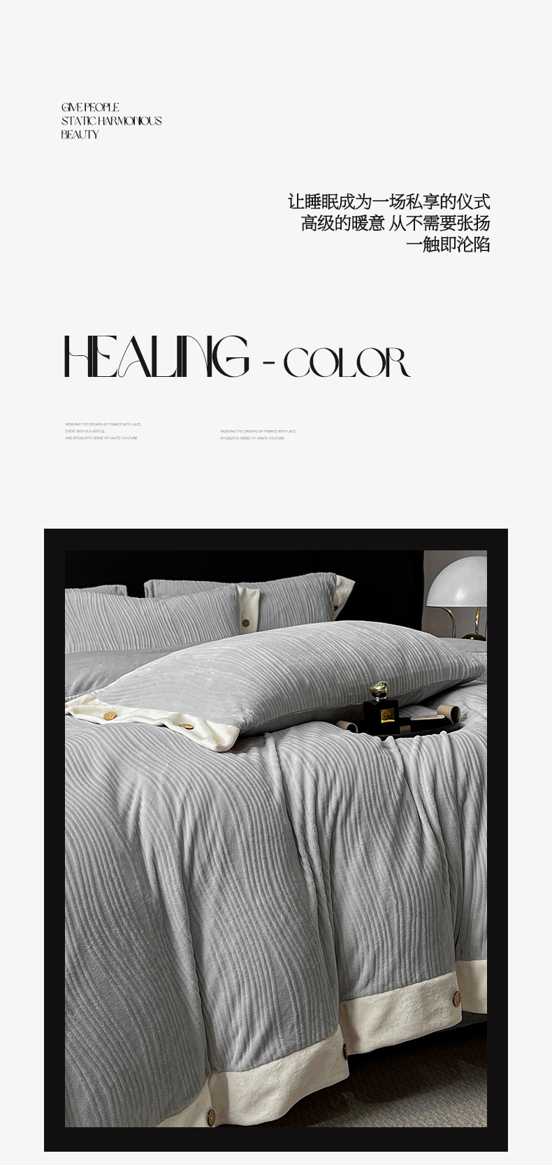 当前位置: 91家纺网 > 商品网购 > 床品套件 > 四件套 > 牛奶绒四件套 > 慕希家纺 2025新款亲肤舒适高克重牛奶绒纽扣款四件套 纽扣款-岛屿灰