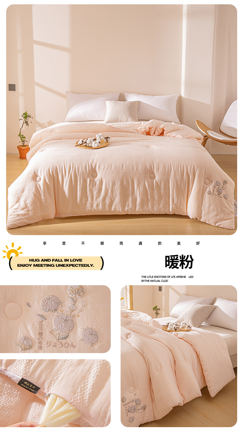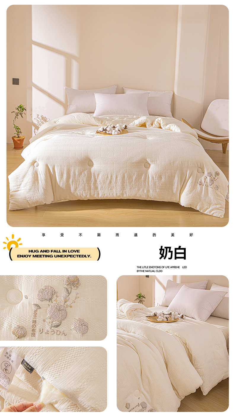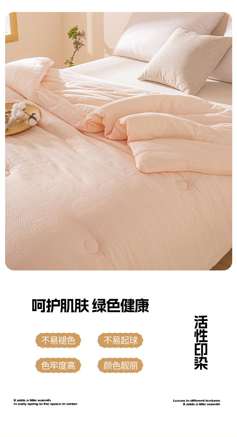 • 91家纺网 家纺一手货源 找家纺 (总)欧夏家纺 2025新款亲肤舒适皱皱棉小芙提花大豆被被子被芯,奶昔白,润粉色,雾银灰,香槟色