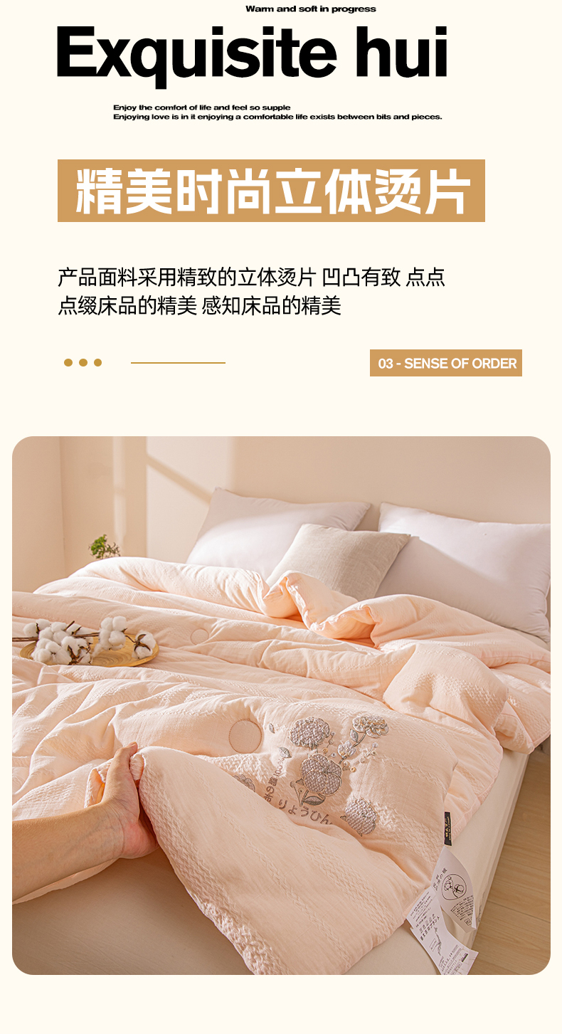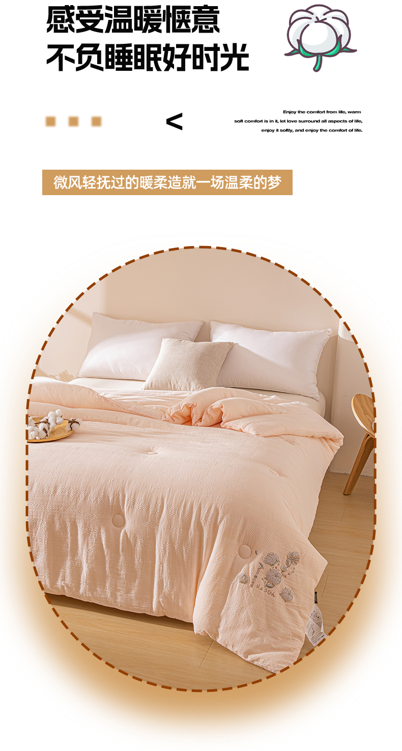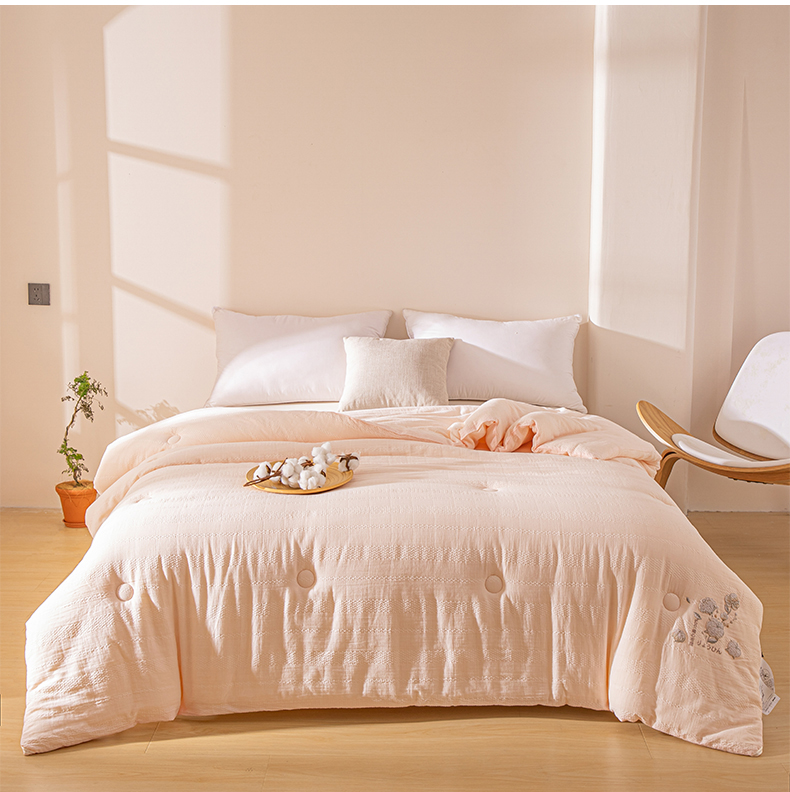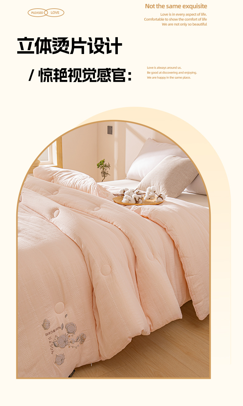 • 91家纺网 家纺一手货源 找家纺 (总)欧夏家纺 2025新款亲肤舒适皱皱棉小芙提花大豆被被子被芯,奶昔白,润粉色,雾银灰,香槟色