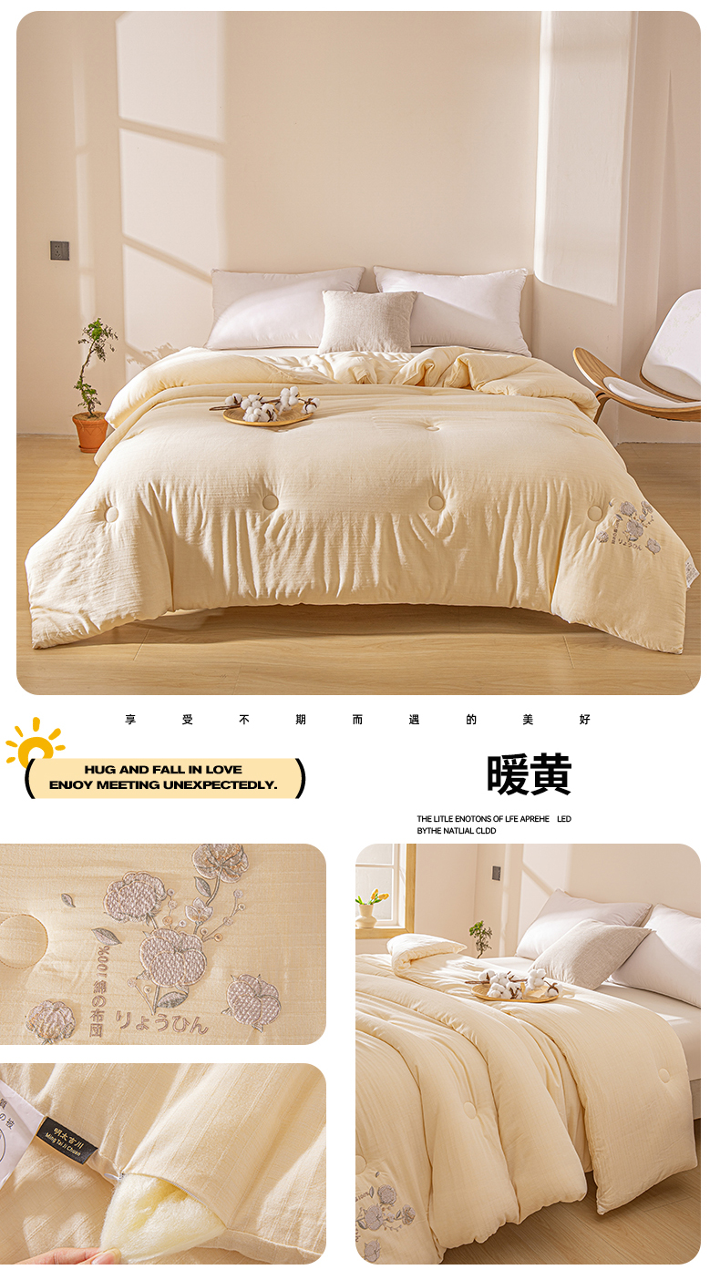 • 91家纺网 家纺一手货源 找家纺 (总)欧夏家纺 2025新款全棉纱布棉花被冬被春秋被被子被芯,泊美玉,琥珀色,奶昔白