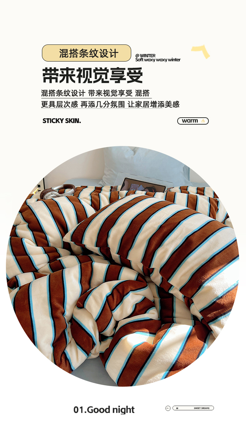 当前位置: 91家纺网 > 商品网购 > 床品套件 > 四件套 > 牛奶绒四件套 > 蜜宿 2025新款混搭条纹牛奶绒四件套(小号默认条纹枕套一只)可以配小号四件套枕套9/一只;标准和加大(默认混搭枕套条纹一只,纯色一只,可以备注更换!) 摩登米兰