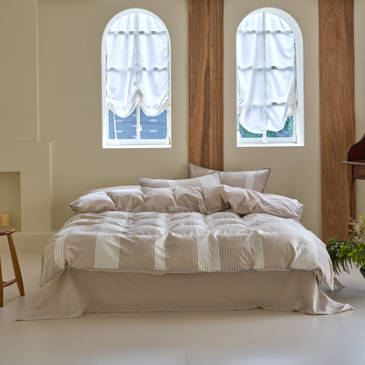 当前位置: 91家纺网 > 商品网购 > 床品套件 > 四件套 > 其它四件套 > 洋铭区(原狠狠爱) 2025新款慕斯VS早安水洗棉彩边色织提花四件套 慕斯绿
