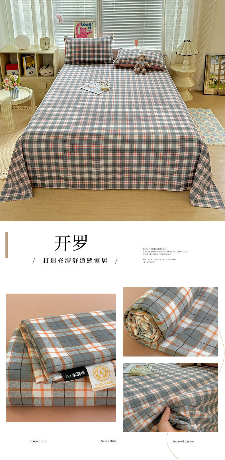 南通菲度家纺 2025新款ins博主风软糯糯亲肤印花热款纯色格子无印风水洗棉时尚单床单 比利时