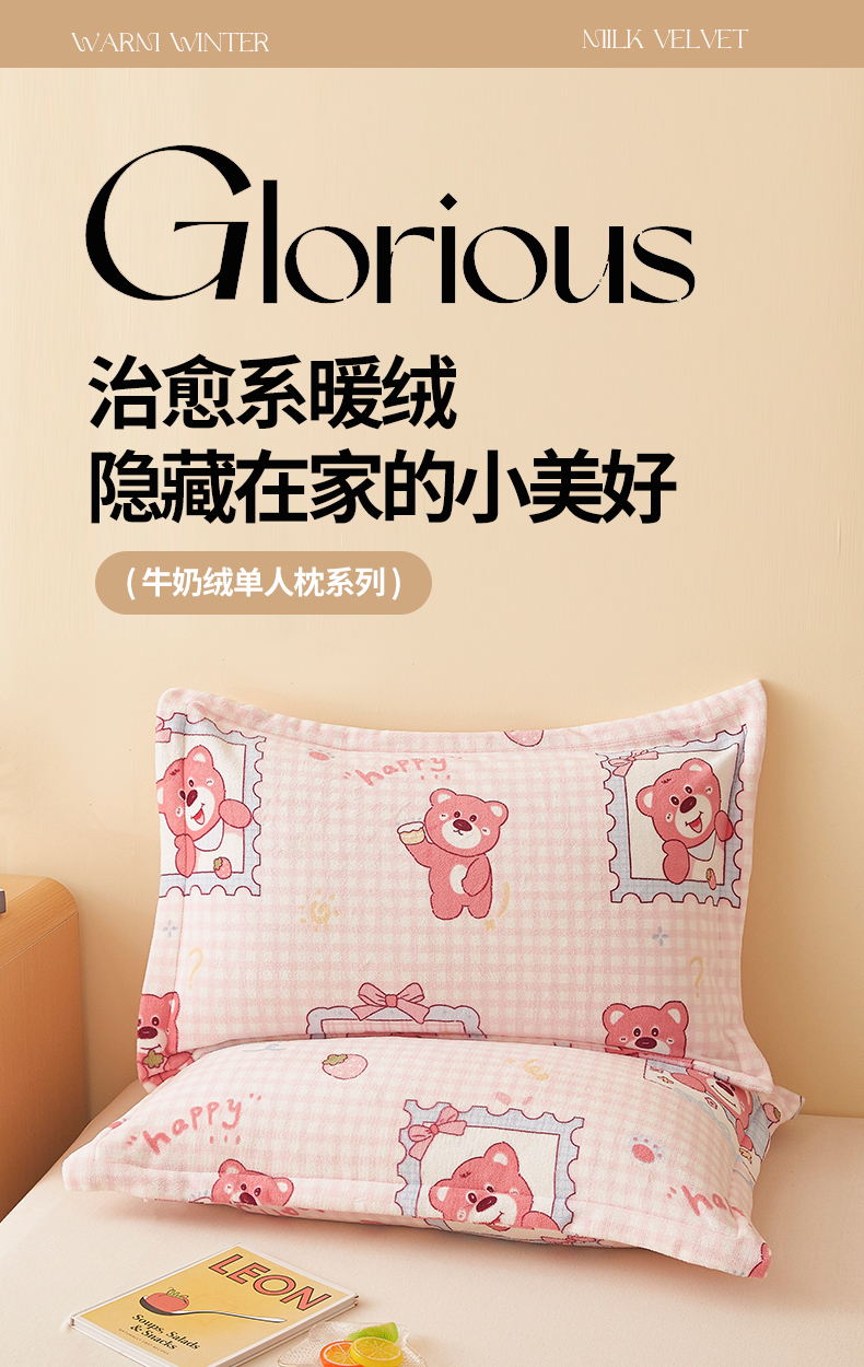 (总)翎盈家纺 2025款加厚高克重牛奶绒枕头套