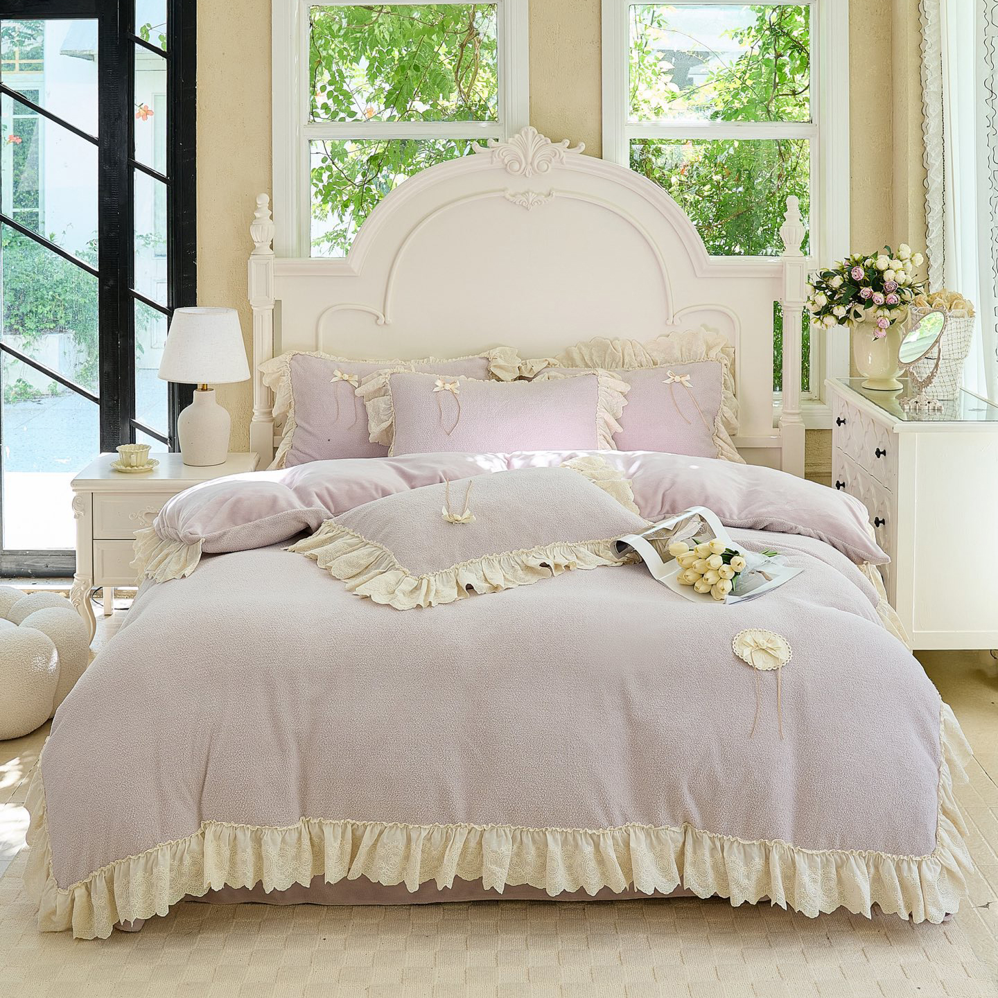 玖玖爱家纺 2025新款高克重法式甜美特软艾尼绒四件套 帛紫
