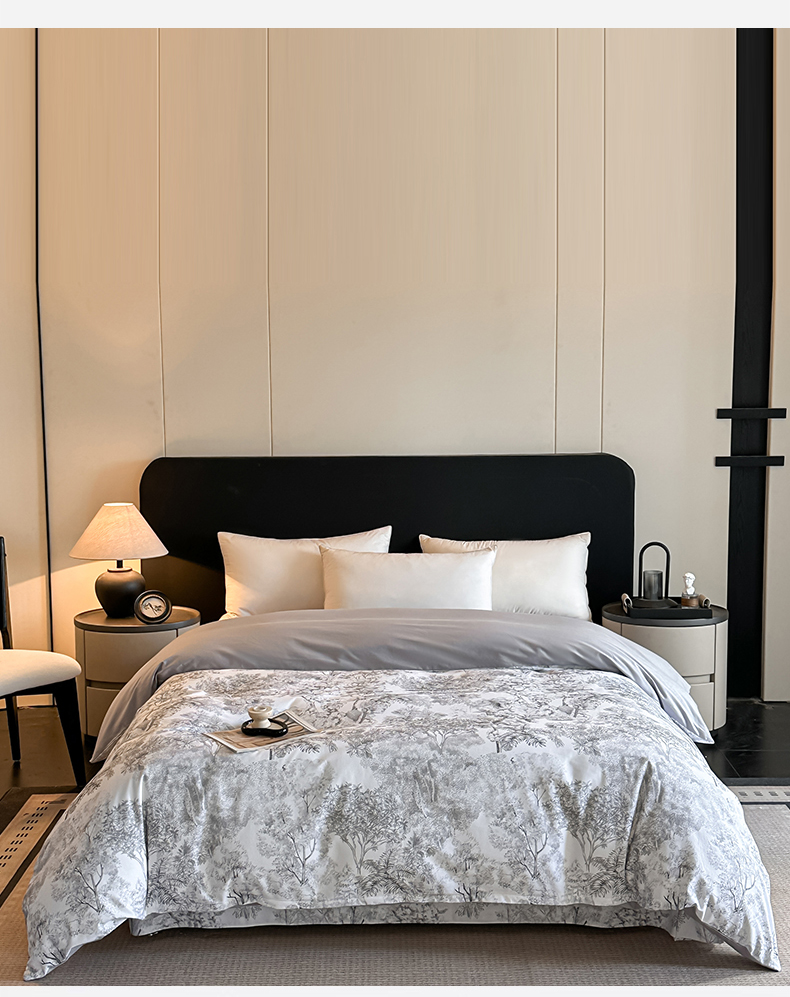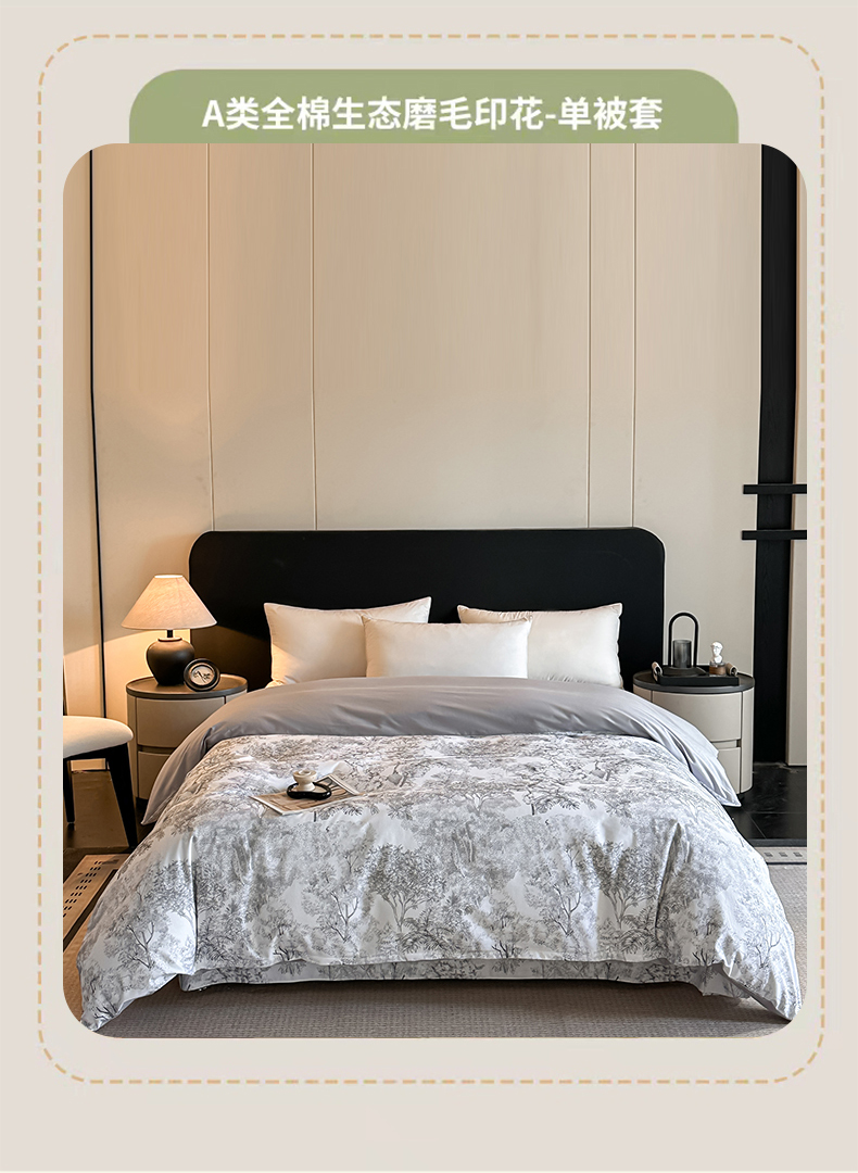• 91家纺网 家纺一手货源 找家纺 大柏树 2025新款全棉磨毛印花单被套系列(可定制) 浮生-灰