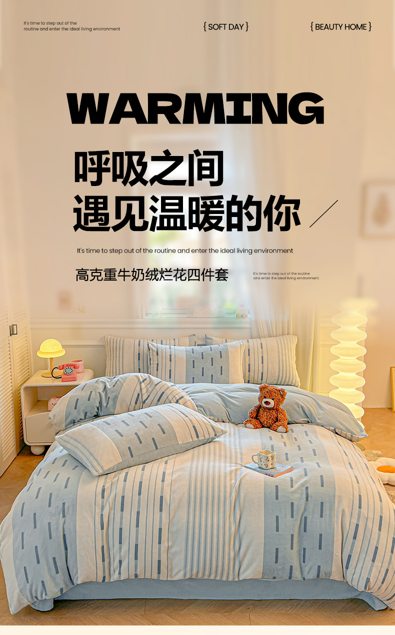 (总)莱茵家居 2025新款高克重牛奶绒烂花四件套,眠语-粉,眠语-蓝,暖格-粉,暖格-咖,暖格-蓝