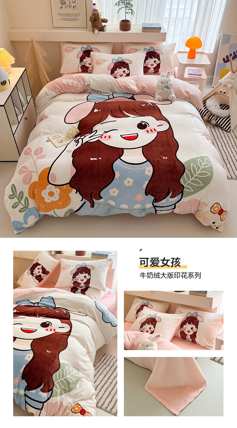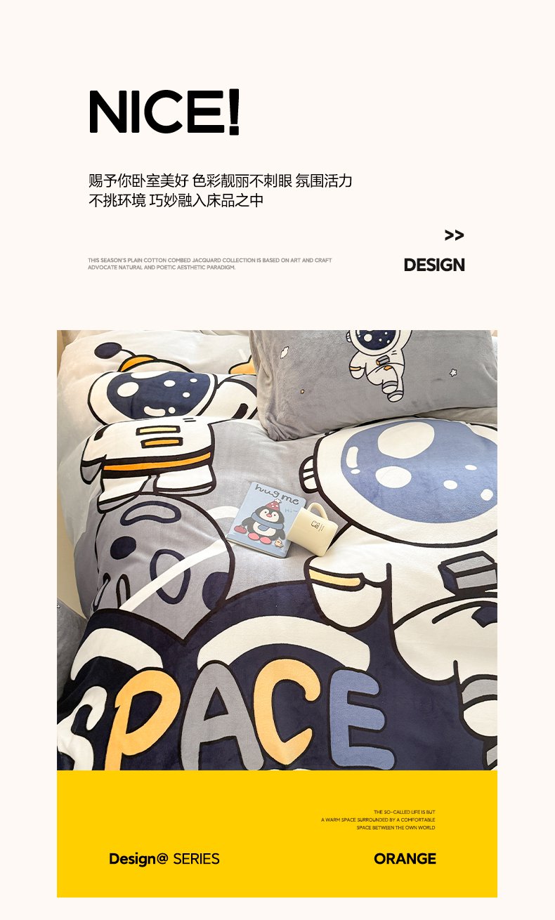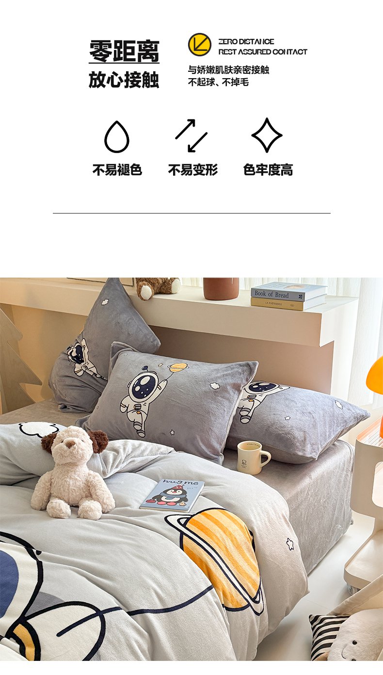 商品名称:悦织湾家纺 2025新款大版卡通印花牛奶绒四件套儿童床绒套件学生宿舍单双人床上用品三四件套 遨游太空