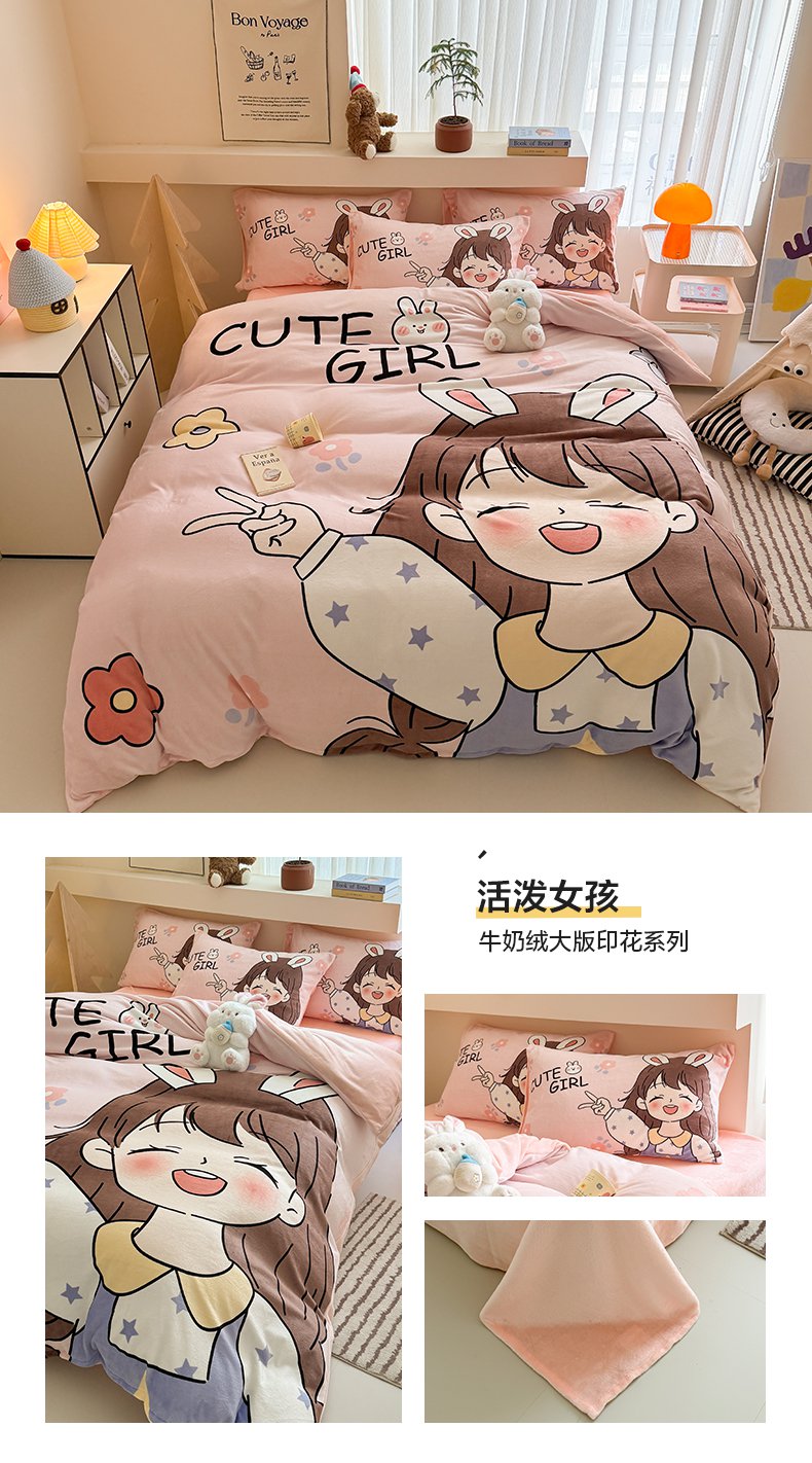 悦织湾家纺 2025新款大版卡通印花牛奶绒四件套儿童床绒套件学生宿舍单双人床上用品三四件套 遨游太空