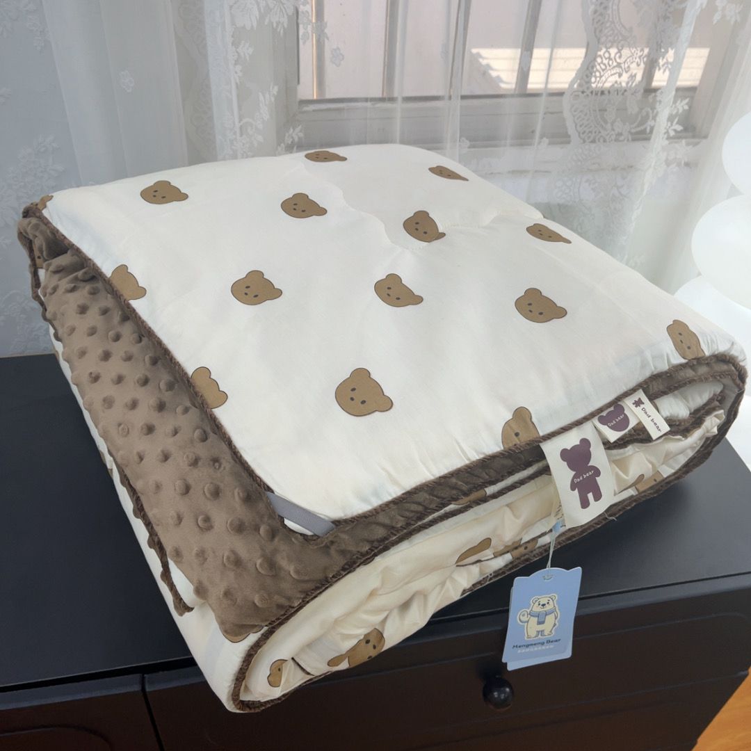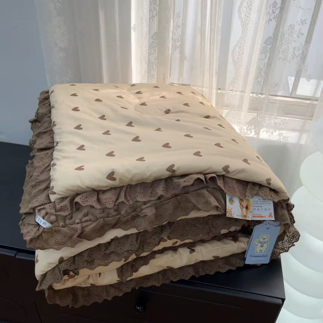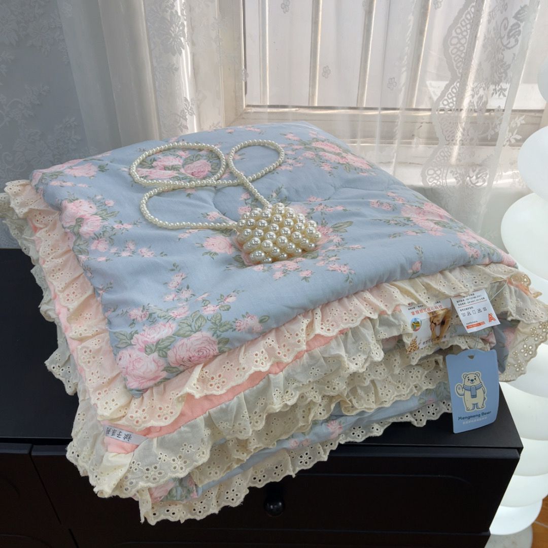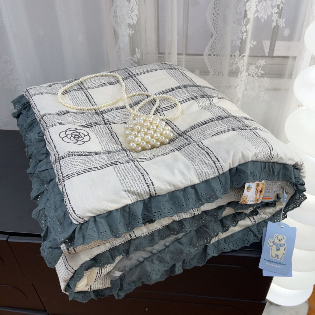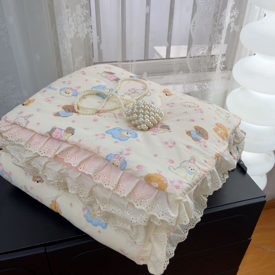 暖居 2025新款纯棉花边款春秋豆豆被四季通用 笑脸