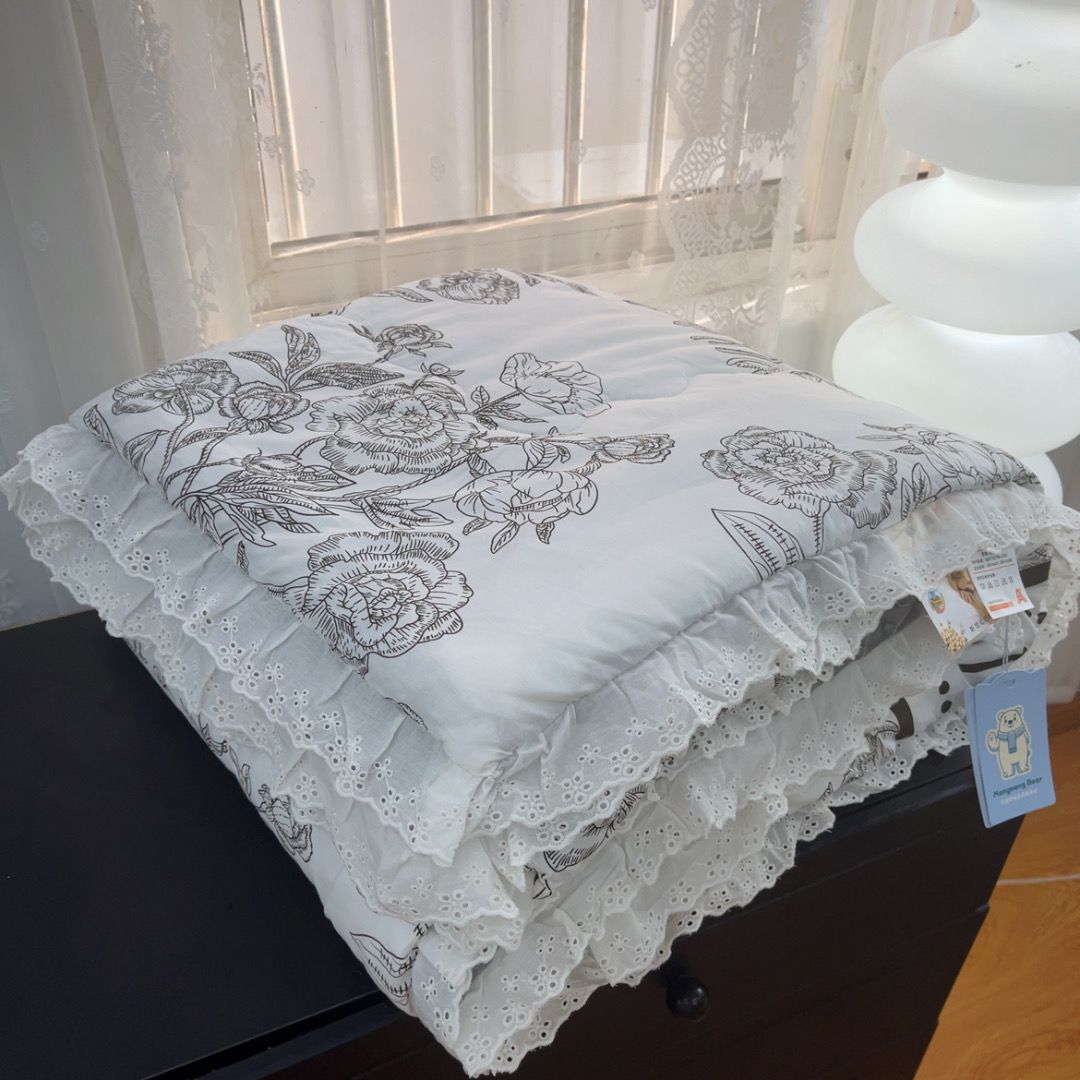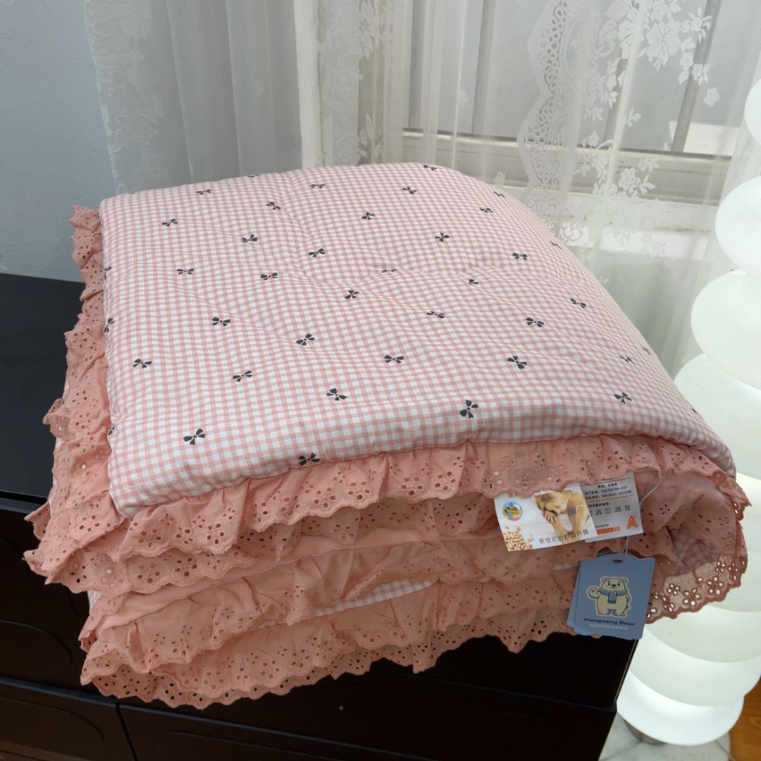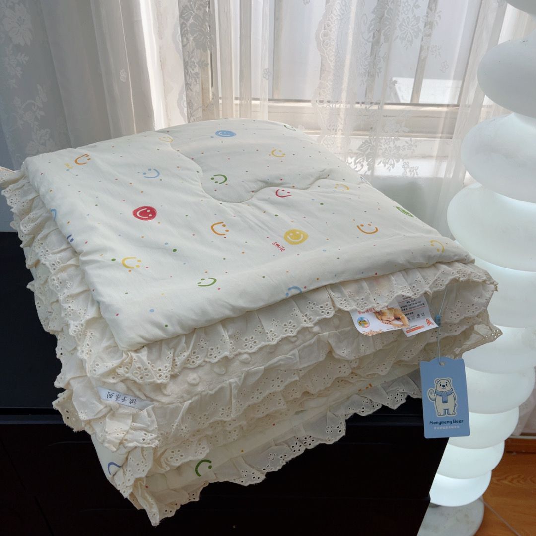 商品名称:暖居 2025新款纯棉花边款春秋豆豆被四季通用 笑脸