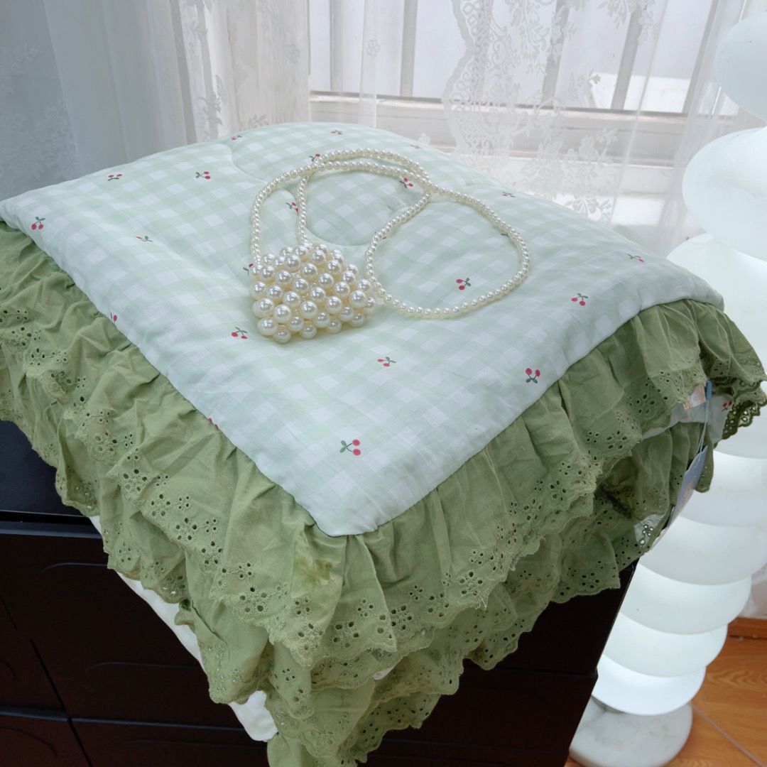 (总)暖居 2026新款大尺寸双层纱高温砂洗245X265床盖三件套,车厘子,粉绿格,洛璃,米妮,旺旺队,小丸子,樱桃可可,饼干熊,木马,小星星