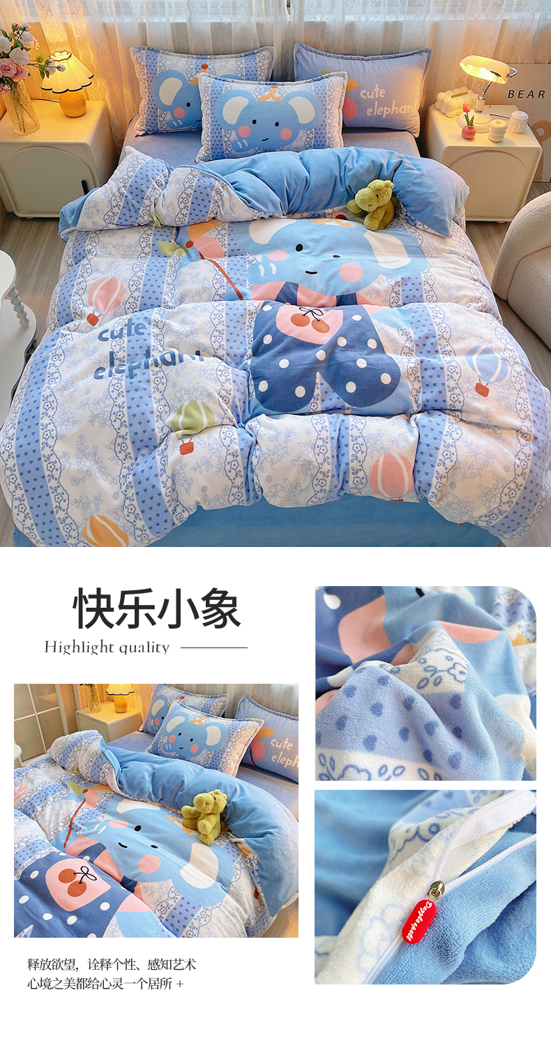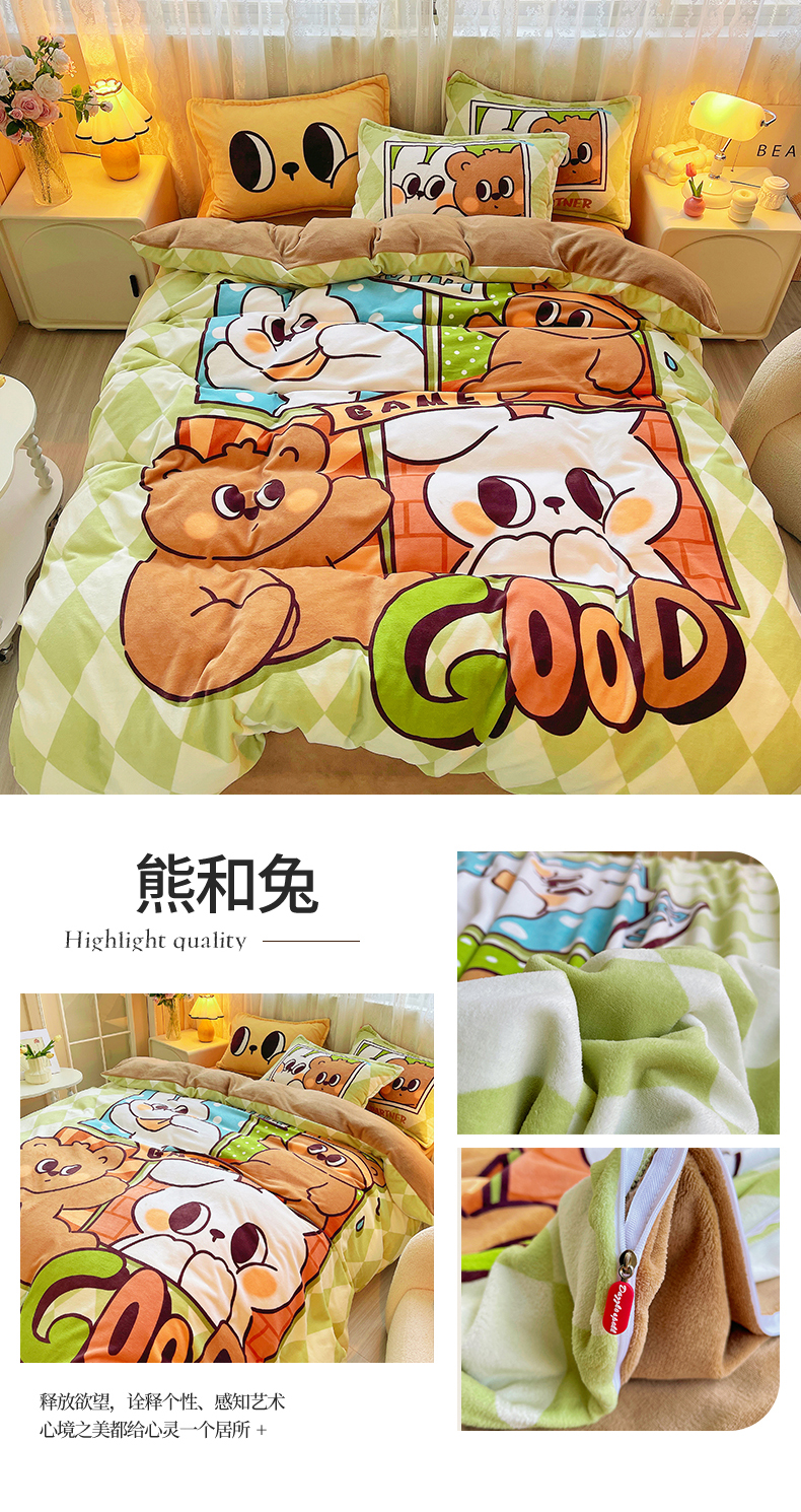 (总)炫拼家纺 2025新款大版数码印花卡通高克重牛奶绒四件套,乔治汪汪,快乐小象,熊和兔,啵啵熊,扭扭狗,苹果狗,豹纹兔兔,泡泡狗,搞怪兔兔,向钱看,元气企鹅