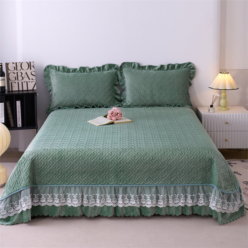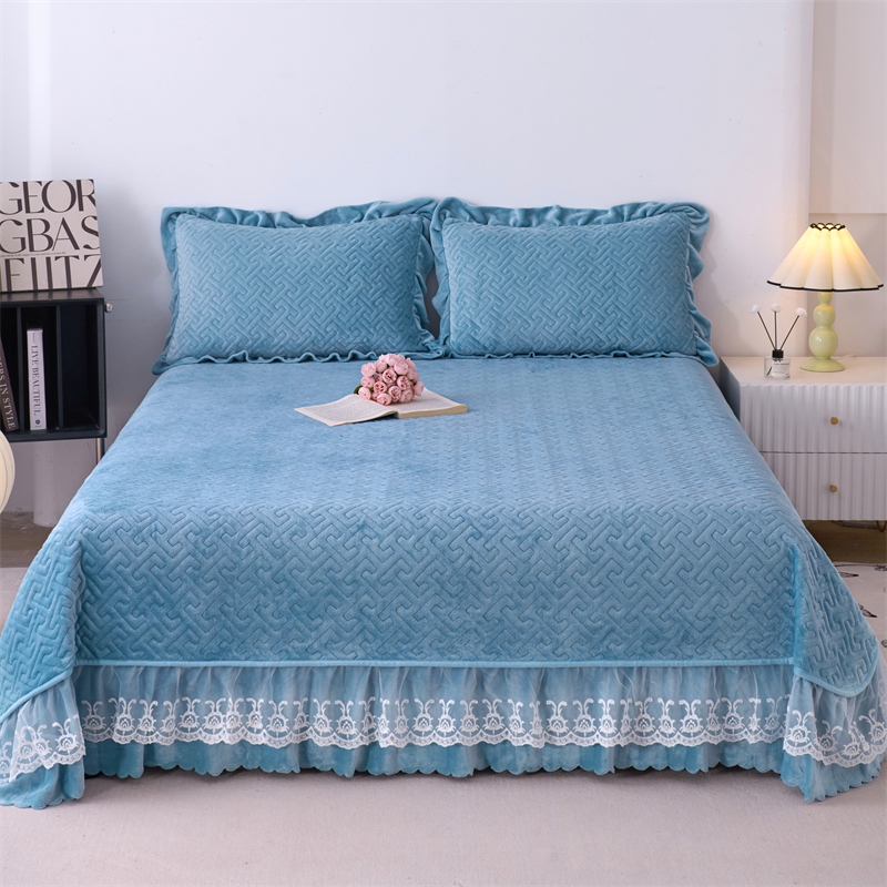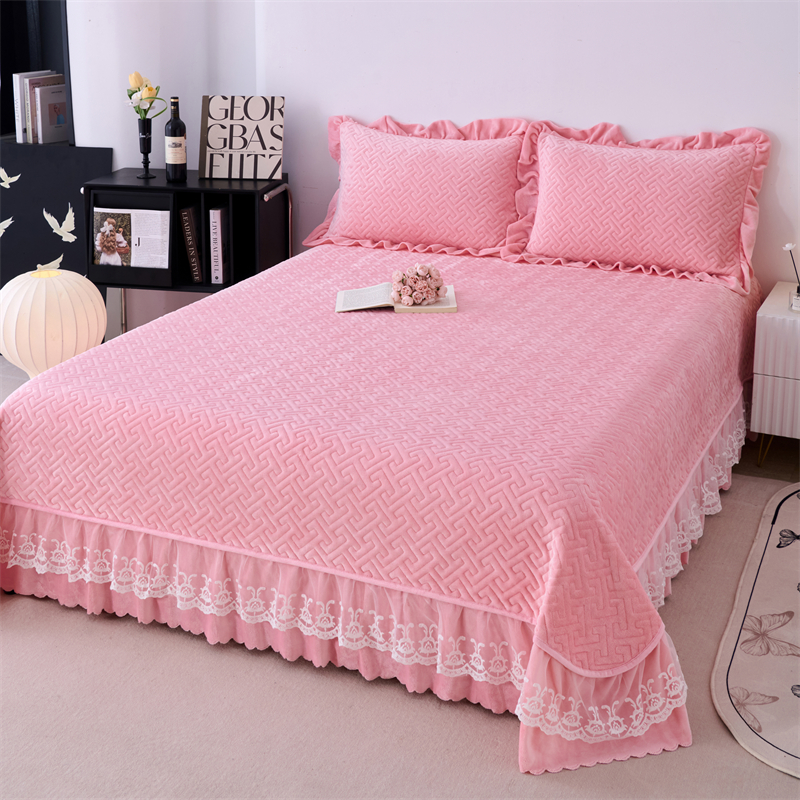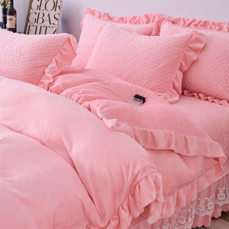 商品名称:(总)畅畅家纺 2025新款11斤纯色韩版冬季超柔加厚牛奶花边床盖四件套