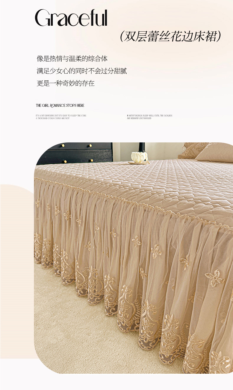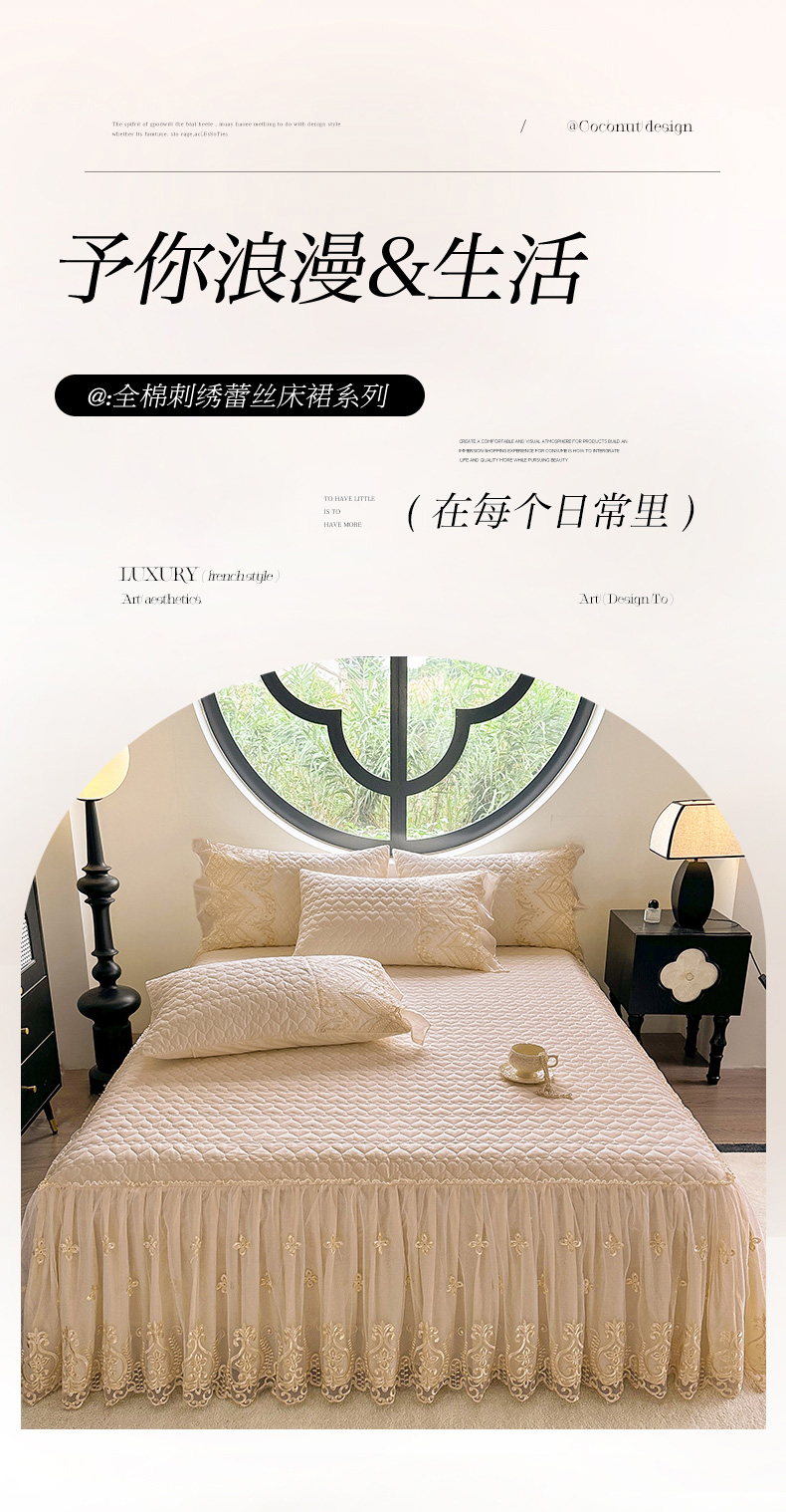 床上用品 > 床裙 > 罗艺轩 2025新款全棉纯棉蕾丝刺绣琉璃单床裙床裙单件(1.5m控价135起、1.8m控价140起、1.8*2.2m控价145起、2.0m控价150起) 琉璃-香槟
