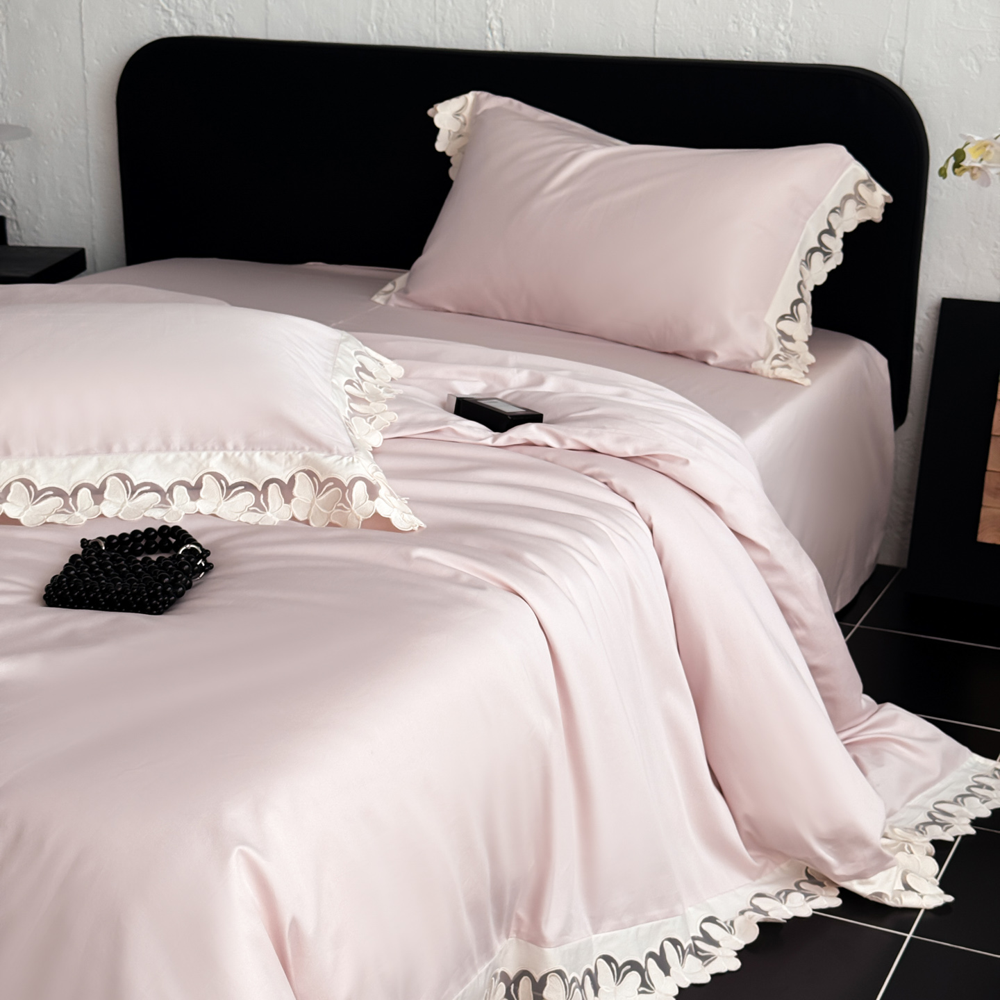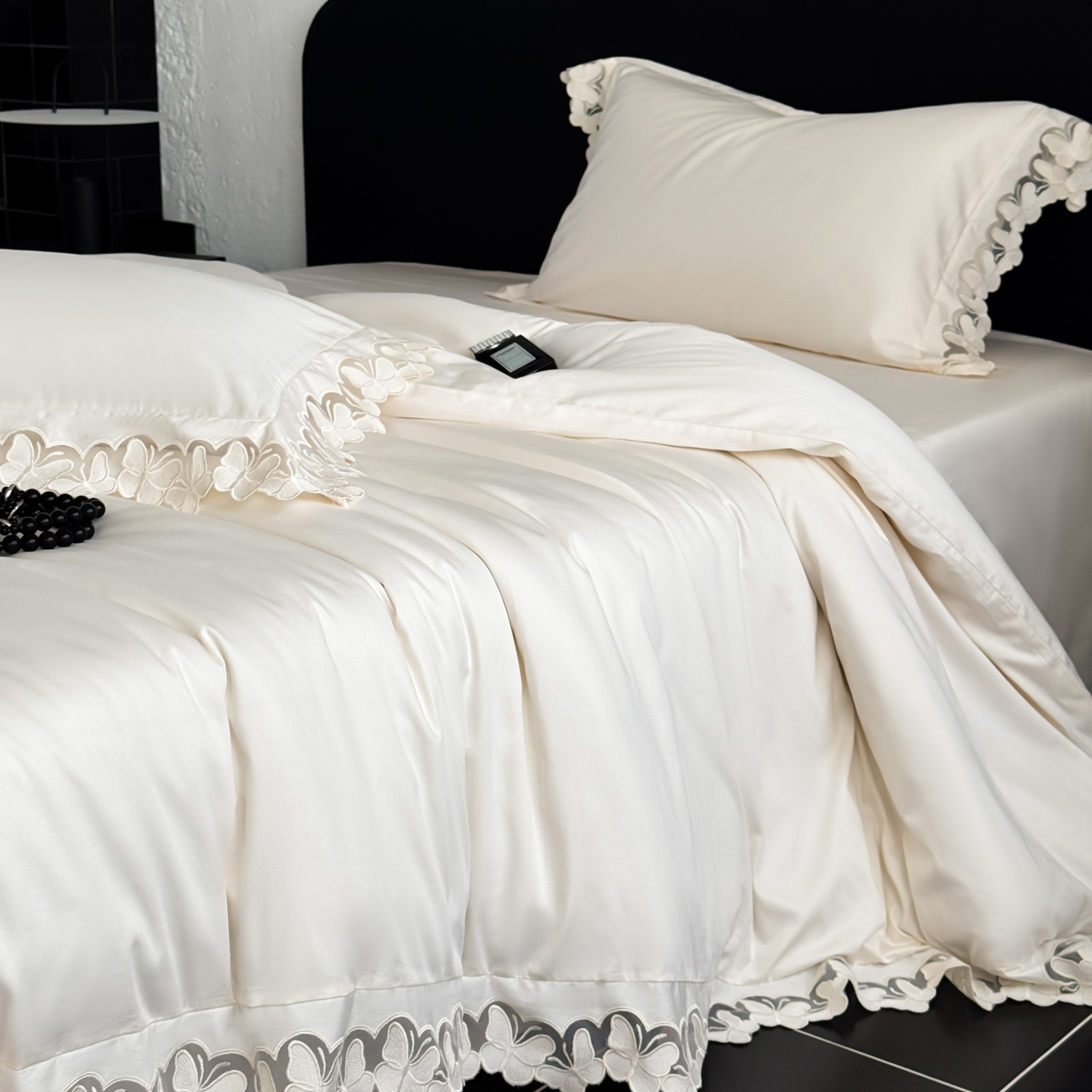 (总)若未 2023新款50支长绒棉镂空轻奢四件套-奢梵克,爱玛橘,宾利蓝,粉豆沙,贵族白,贵族红,气质灰,山灰色,天蓝