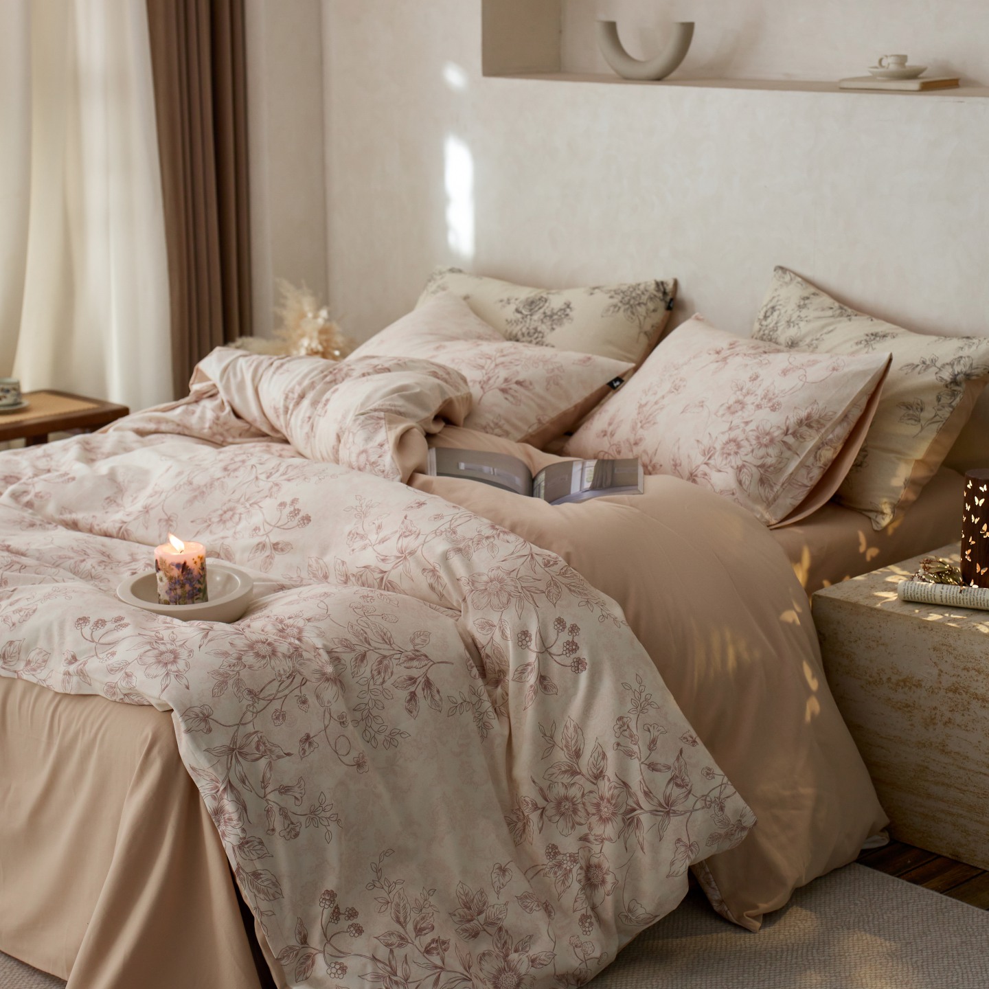 商品名称:安莱生活 2025新款A类40支磨毛印花全棉四件套 秘密花园-米