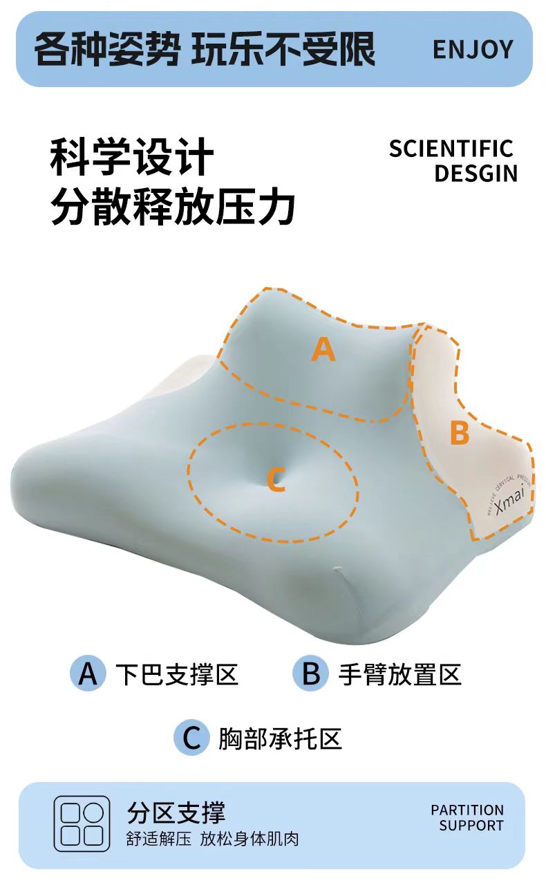 商品名称:其乐枕芯 2025新款多功能慢回弹趴睡枕趴趴枕记忆棉枕头枕芯 极光蓝