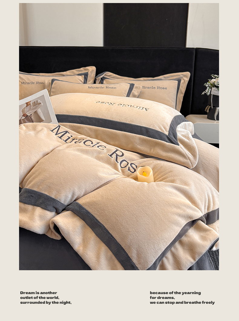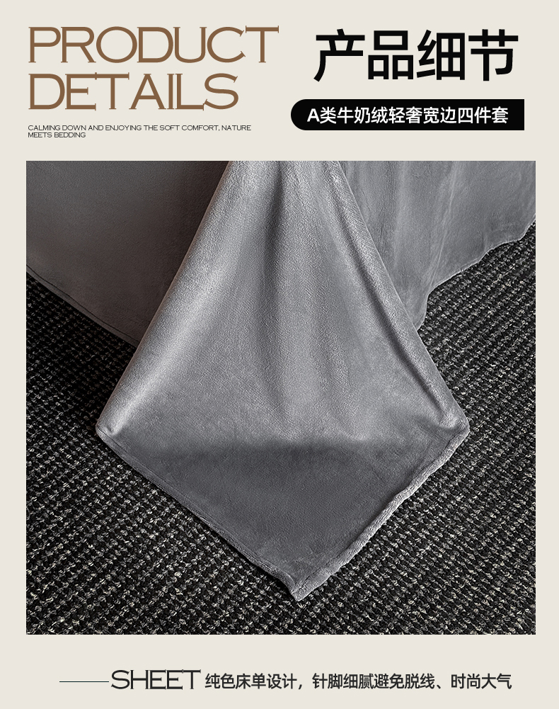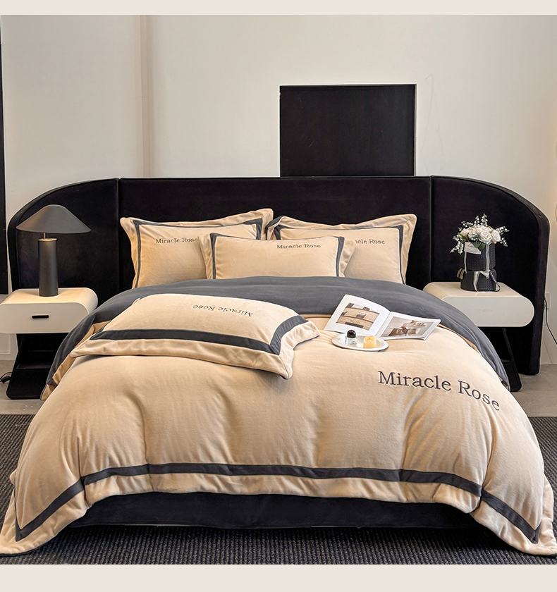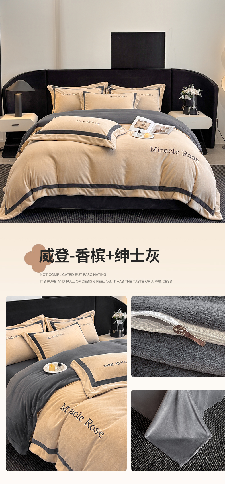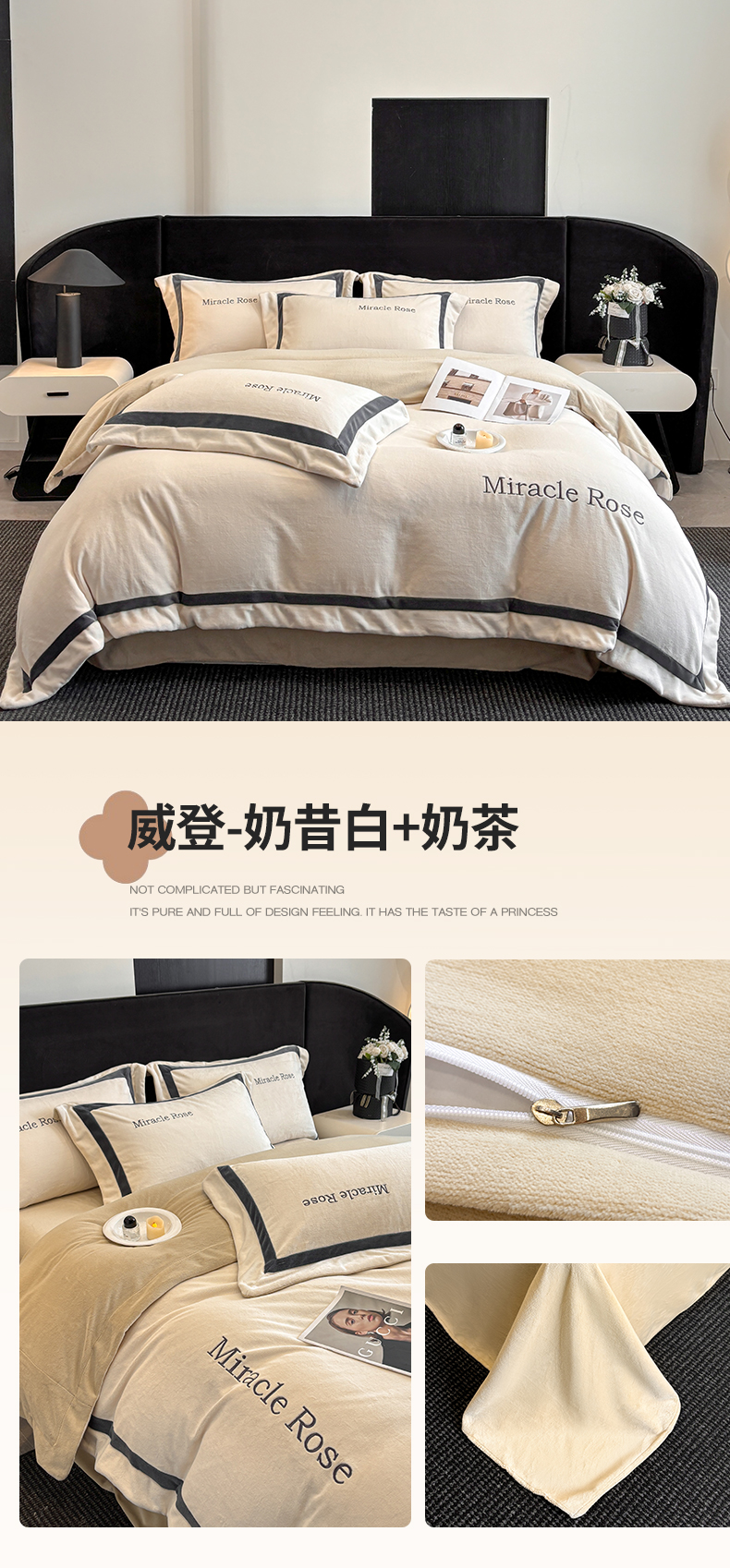 当前位置: 91家纺网 > 商品网购 > 床品套件 > 四件套 > 牛奶绒四件套 > 笙意家纺 2025新款A类加厚牛奶绒轻奢宽边四件套-威登 威登-香槟+绅士灰