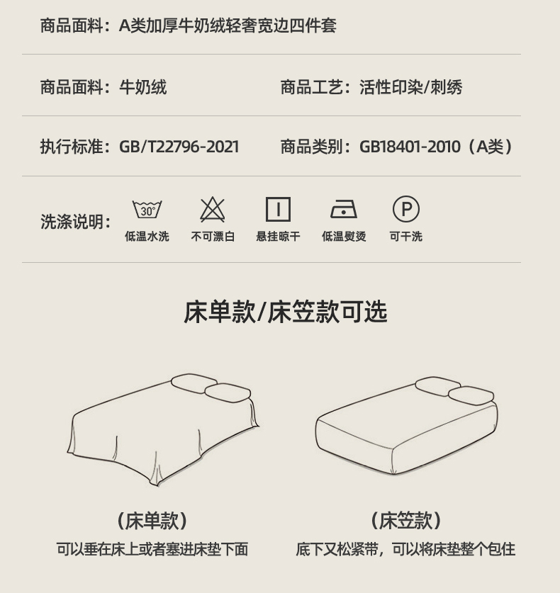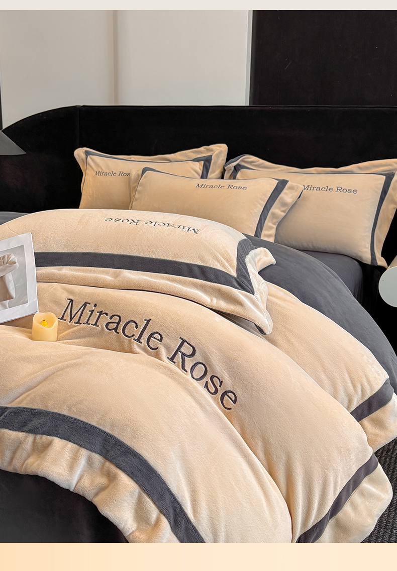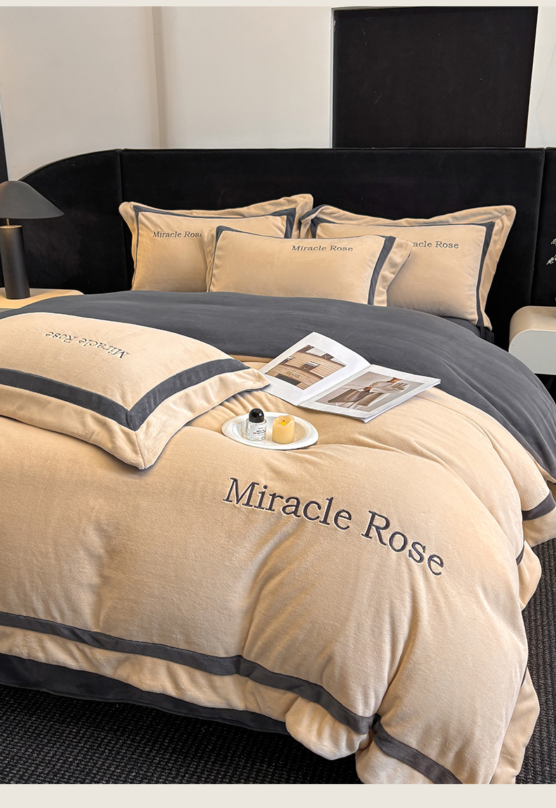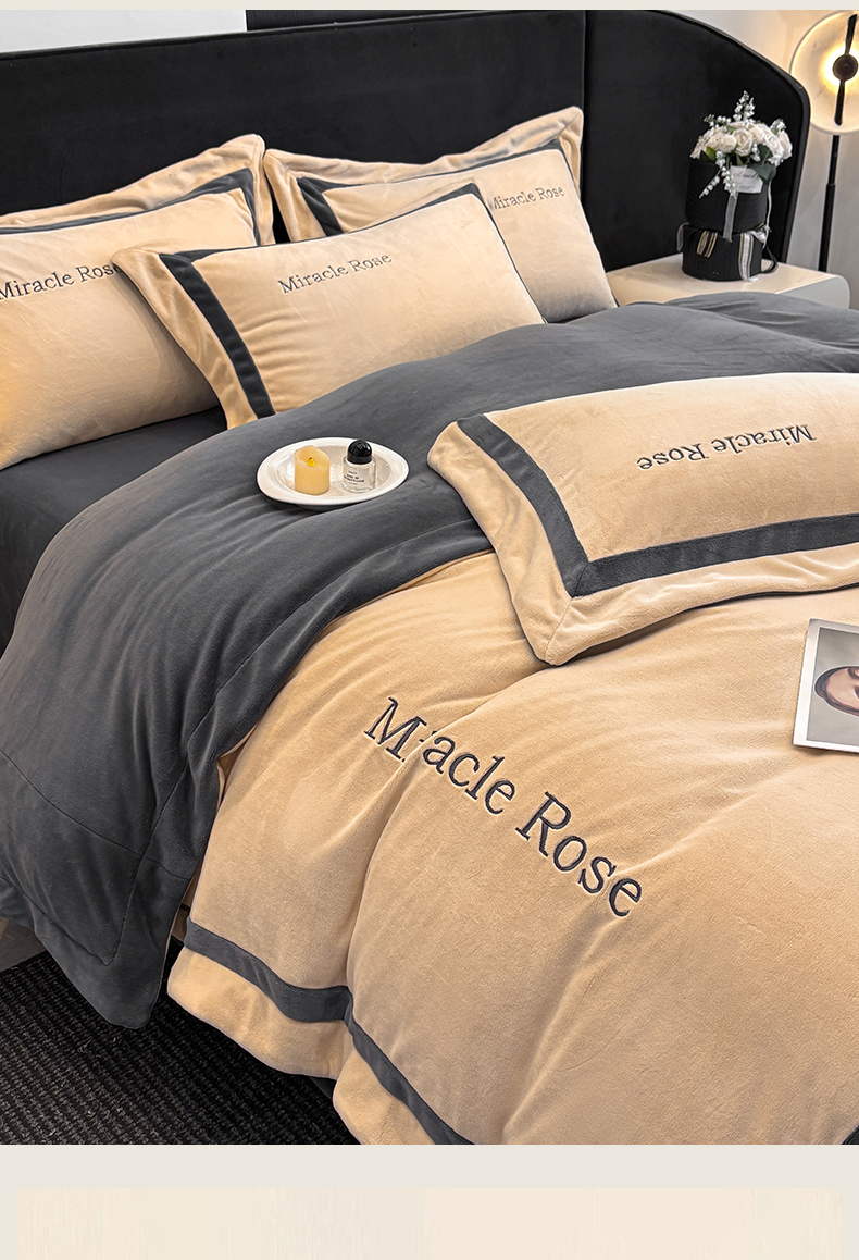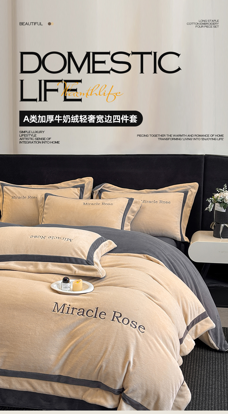 当前位置: 91家纺网 > 商品网购 > 床品套件 > 四件套 > 牛奶绒四件套 > 笙意家纺 2025新款A类加厚牛奶绒轻奢宽边四件套-威登 威登-香槟+绅士灰