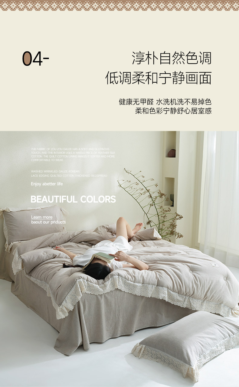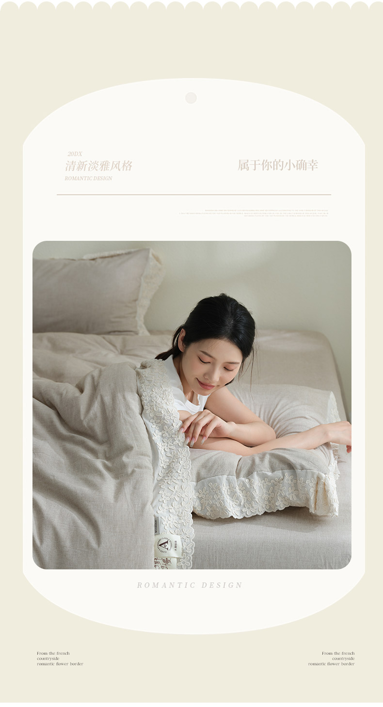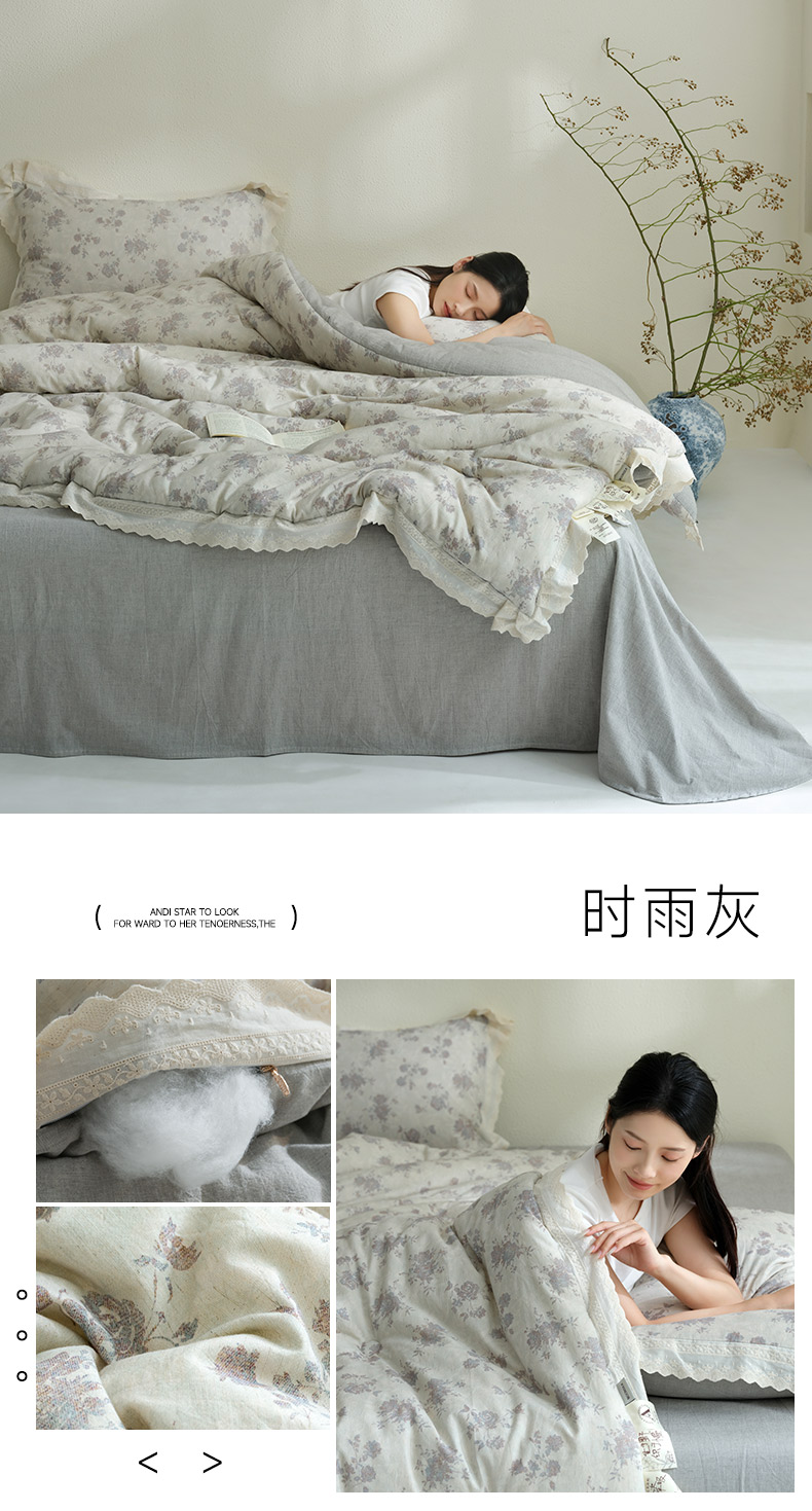 (总)桂雅居 2025新款舒适麻棉麻数码印花蕾丝花边懒人被被子被芯,时雨灰,栗壳色,烟墨灰,麻本色,素锦咖,映雪咖,组合