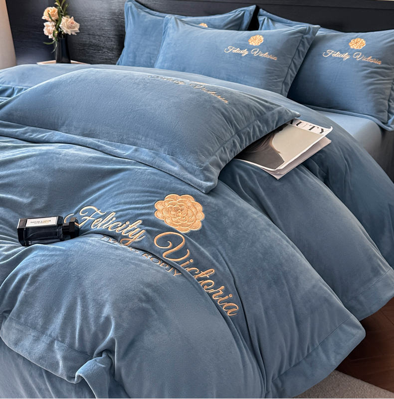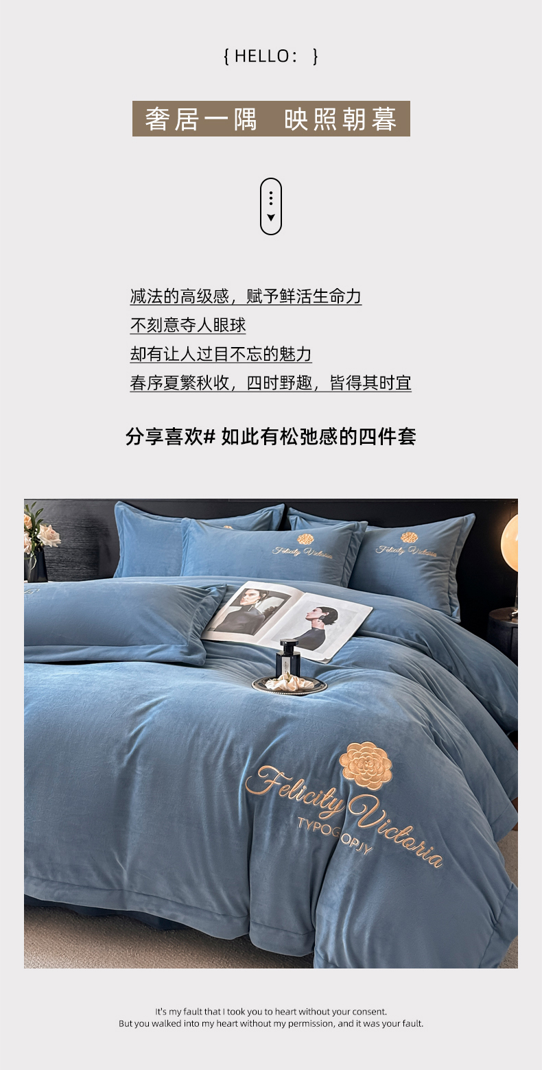 (总)鸿织源家纺 2025新款230g全消光牛奶绒刺绣四件套,宾利蓝,伯爵玉,罗兰灰,奶昔白,赛琳绿,相思咖,豆沙,摩卡棕