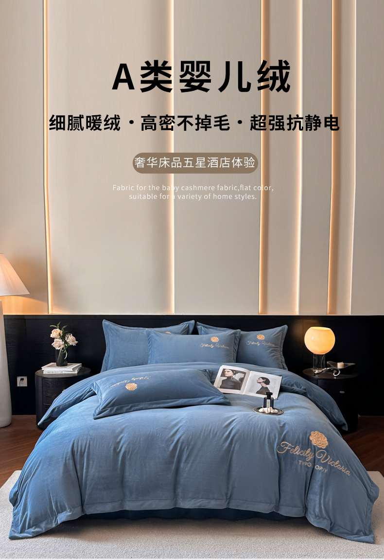 鸿织源2025新款-茶颜系列 宝宝绒宽边四件套 茶颜-宝兰