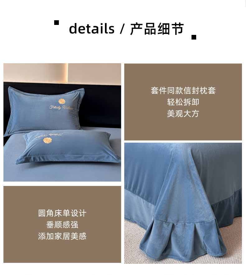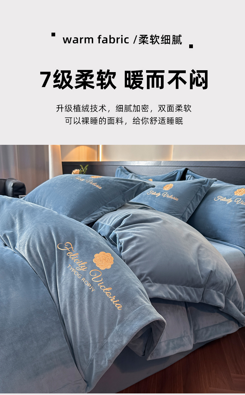 商品名称:鸿织源2025新款-茶颜系列 宝宝绒宽边四件套 茶颜-宝兰