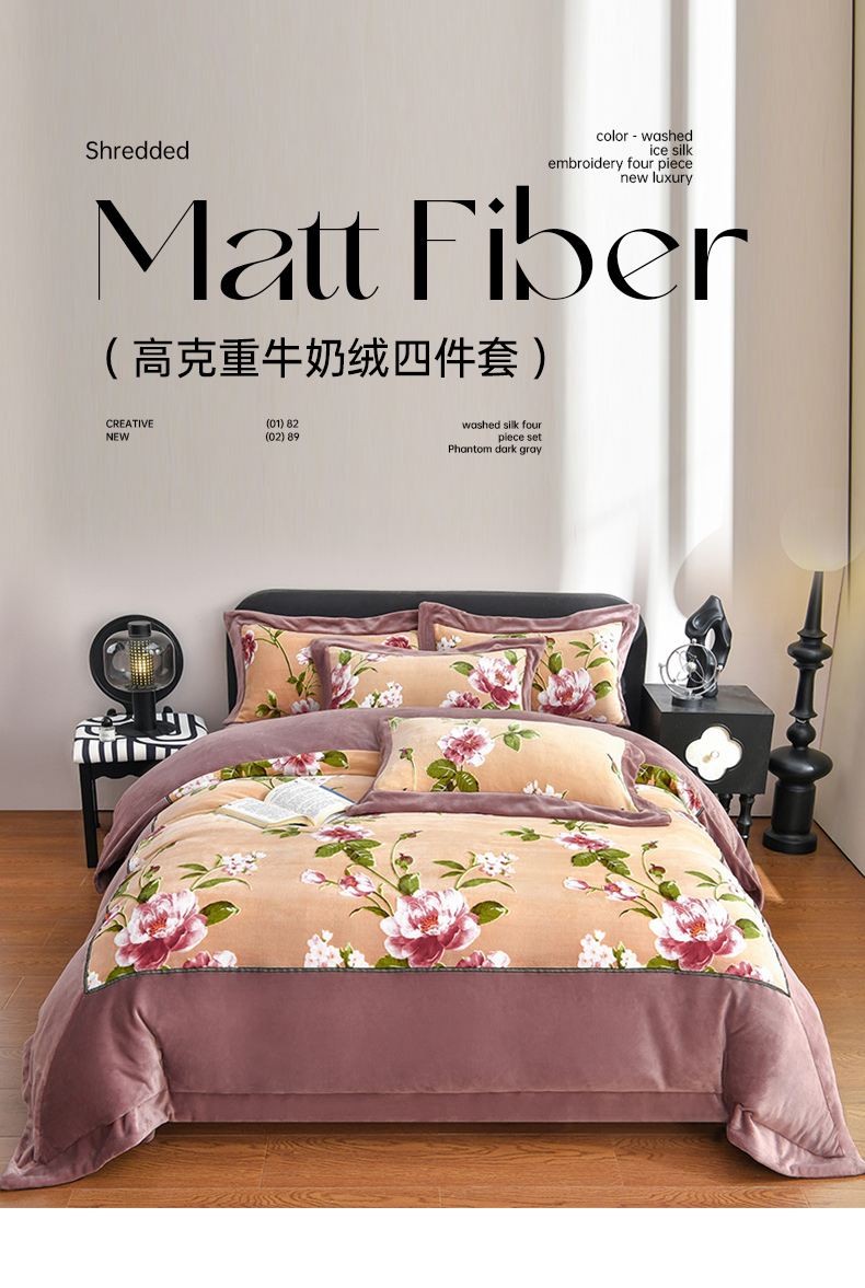 (总)妮恒美家纺 2025新款雕花牛奶绒四件套,法式浪漫-嫣紫,法式浪漫-海蓝灰,法式浪漫-奶茶杏,山水画-海蓝灰,山水画-浅豆沙,山水画-嫣紫,雪莲花-草绿,雪莲花-暖心玉,雪莲花-浅灰绿