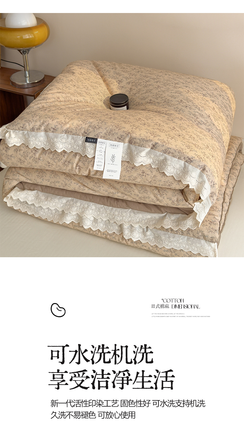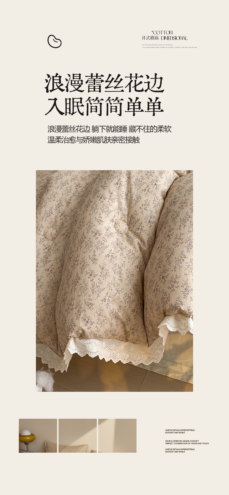 • 91家纺网 家纺一手货源 找家纺 (总)米菲 2025新款全棉双层纱花边被被子被芯,初春,简约格调,南枝