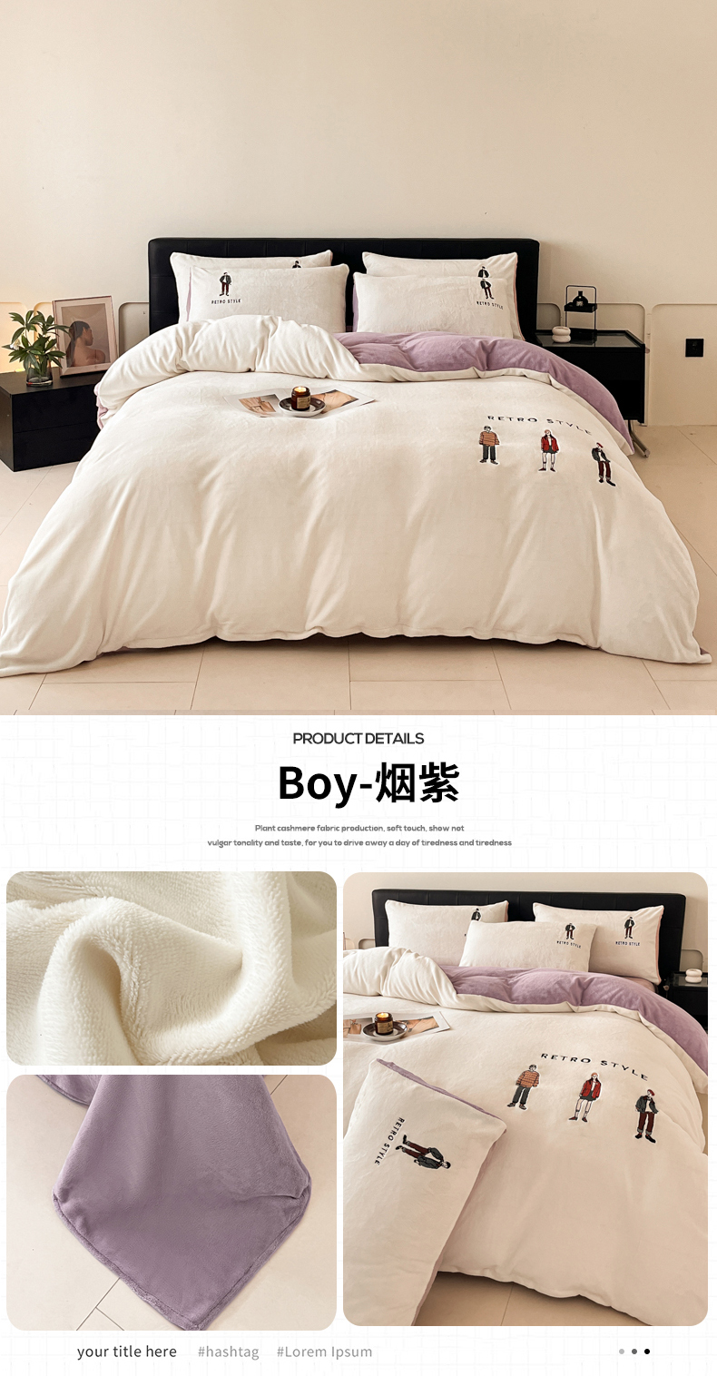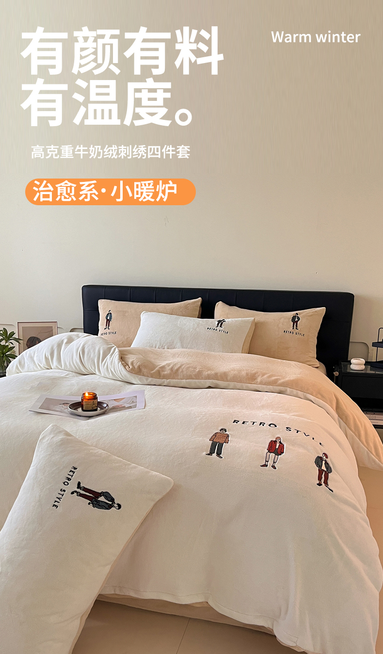 当前位置: 91家纺网 > 商品网购 > 床品套件 > 四件套 > 牛奶绒四件套 > ONE TWO ONE 121 新品【牛奶绒刺绣四件套】2025毛毯被子四件套单件床单被套床笠珊瑚绒牛奶绒冬被法兰绒兔毛绒男孩Boy Boy-深碳灰