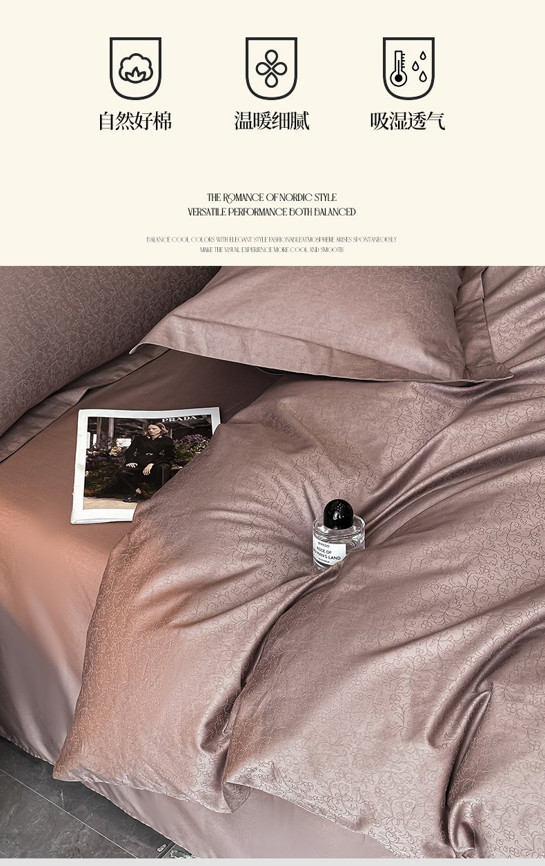 商品名称:梵克保罗 2025春夏新品50S长绒棉轻奢提花四件套 知禾-咖