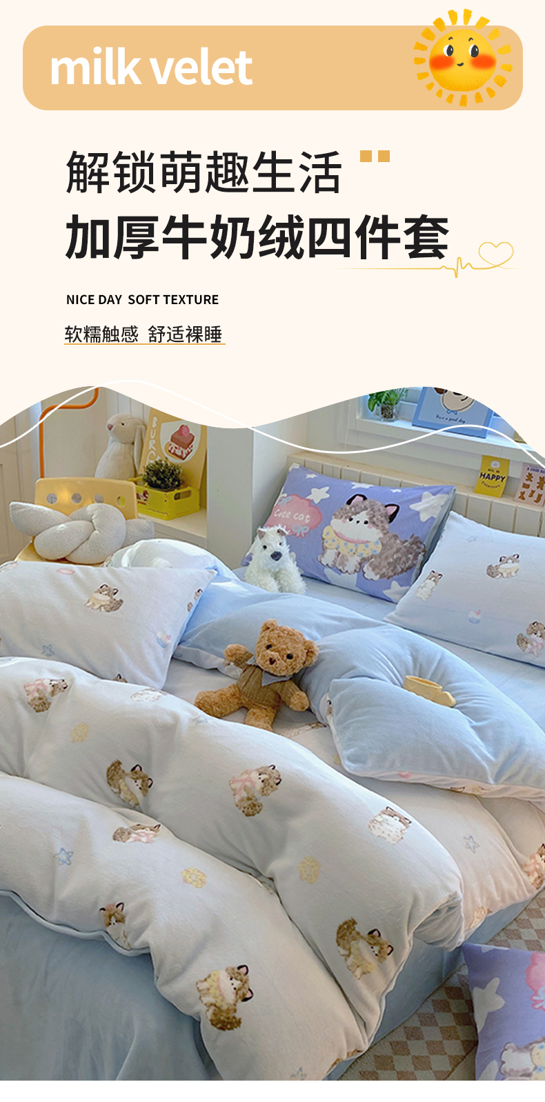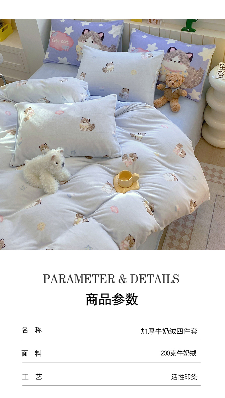 当前位置: 91家纺网 > 商品网购 > 床品套件 > 四件套 > 葡萄家 2025新款高克重印花牛奶绒四件套萌系卡通 软萌猫蓝