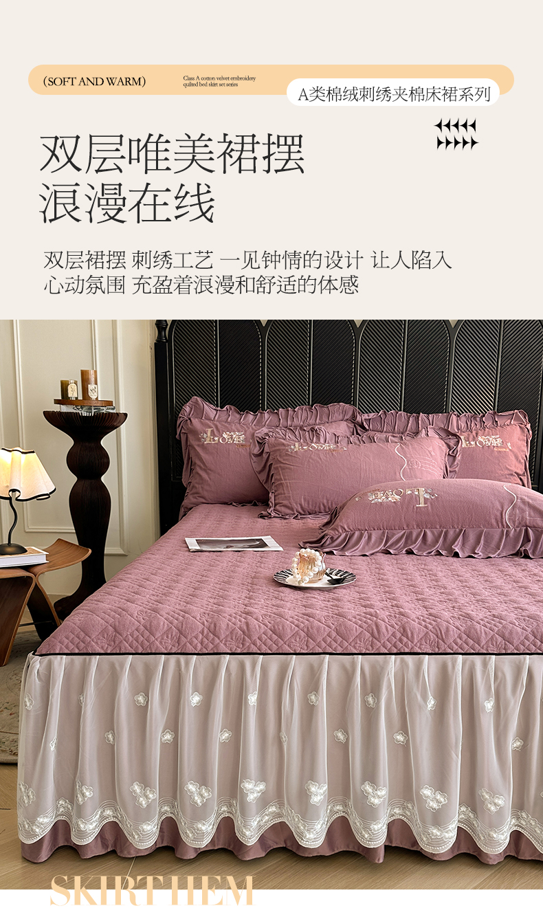 (总)宜凡家纺 2025新款兔绒提花牛奶绒夹棉床裙四件套,爱心 少女粉,爱心 粉紫,爱心 驼色,蝶舞 大红,蝶舞 米色,蝶舞 浅紫,蝶舞 玉色,简爱 苍青,简爱 豆沙紫,简爱 玉色,樱桃 苍青,樱桃 豆沙紫,樱桃 奶油白